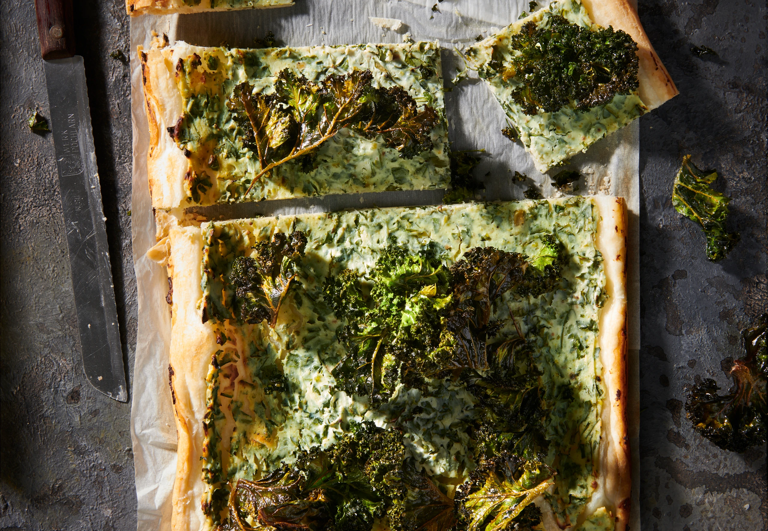 Schnelle Blätterteig-Tarte mit Kale-Chips