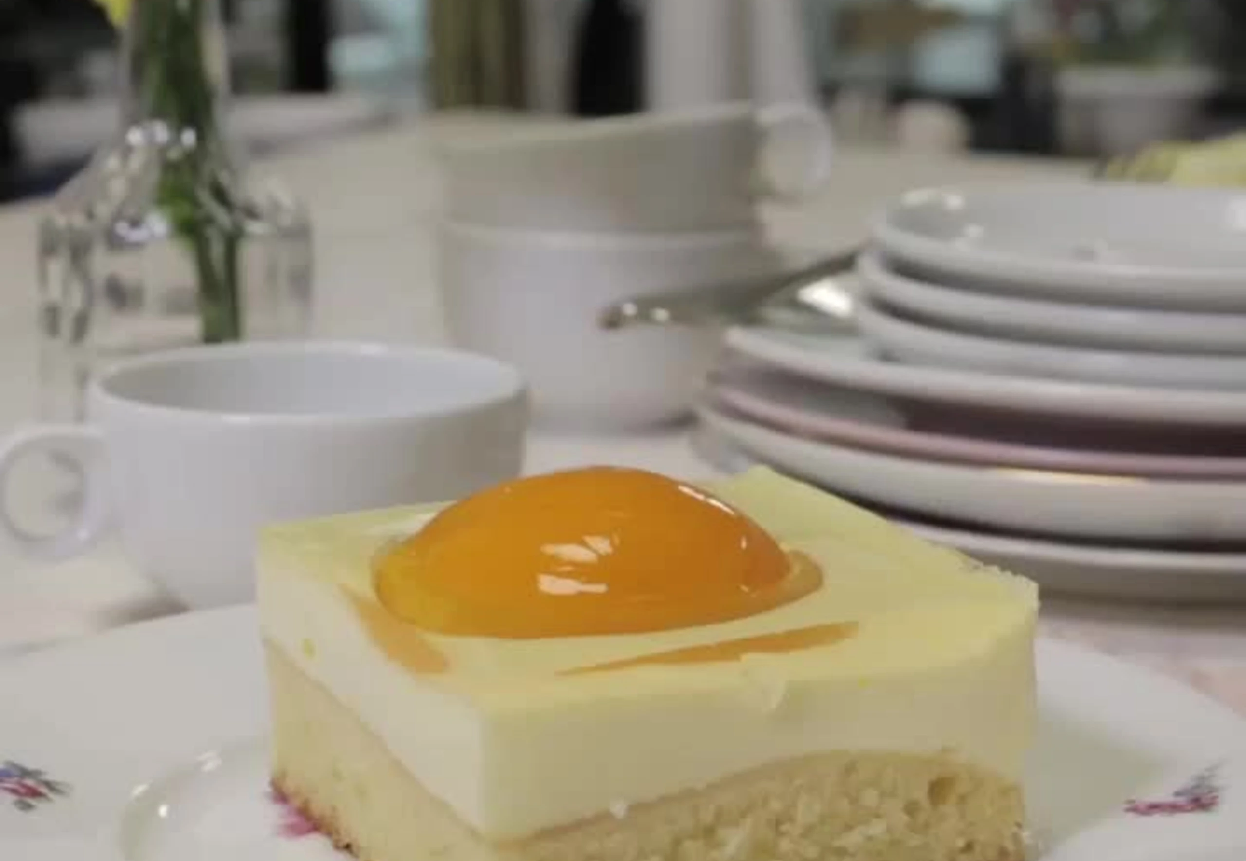 Für das Topping ein Viertel der Milch mit dem Puddingpulver glatt rühren. Übrige Milch aufkochen, Puddingmischung einrühren und cremig einkochen. Pudding umfüllen und zugedeckt auskühlen lassen. Sauerrahm untermischen. Topping auf den Kuchen streichen, mit Pfirsichhälften belegen und im Rohr ca. 15 Minuten fertig backen. Herausnehmen und im Kühlschrank auskühlen lassen.