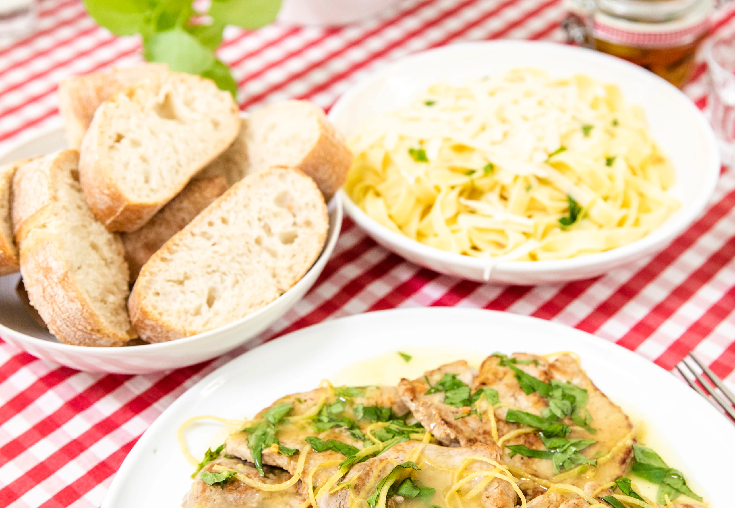 Schnitzel mit Zitronensauce und Basilikum