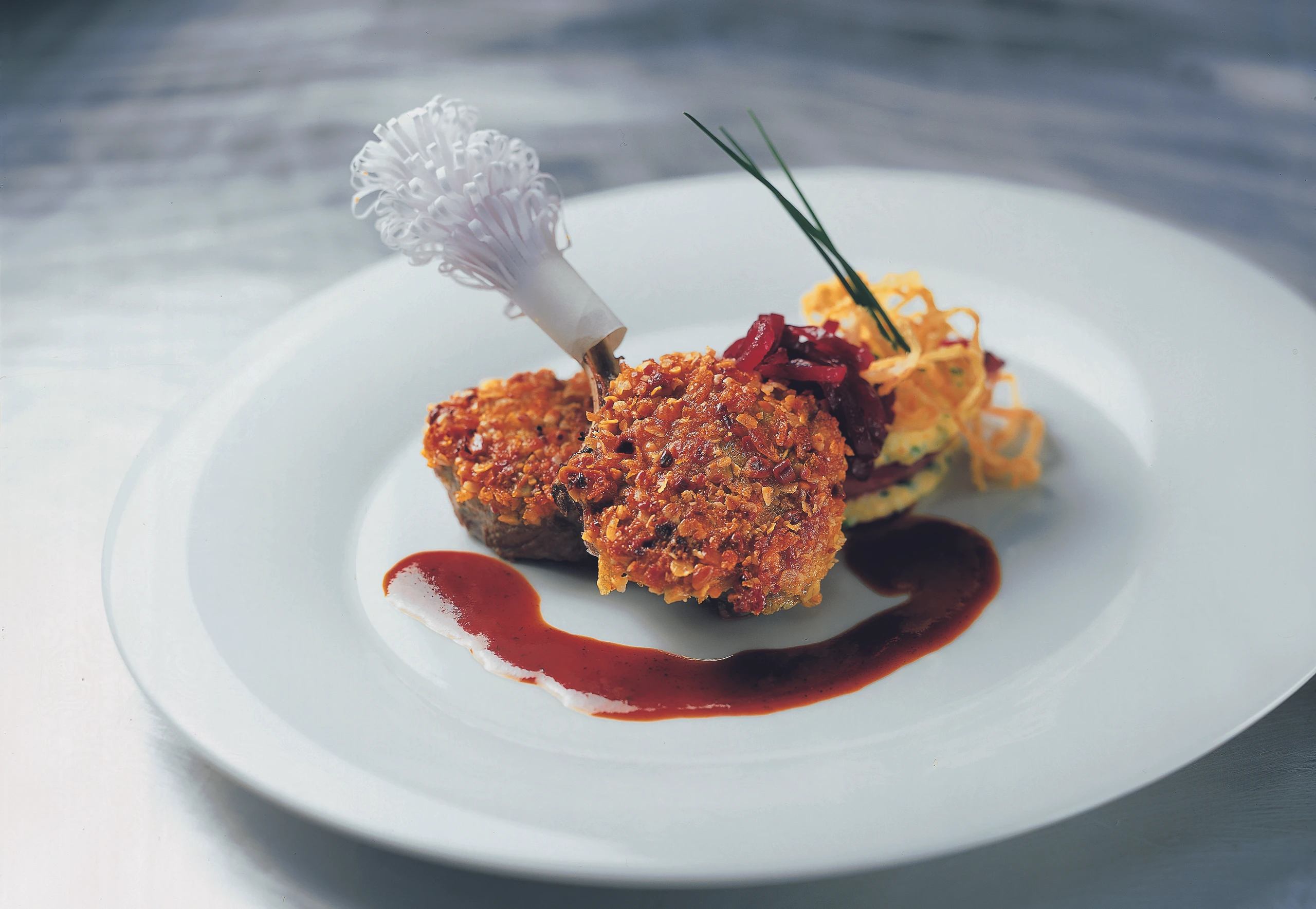 Schnitzerl vom Lamm in Müslihülle mit Polenta