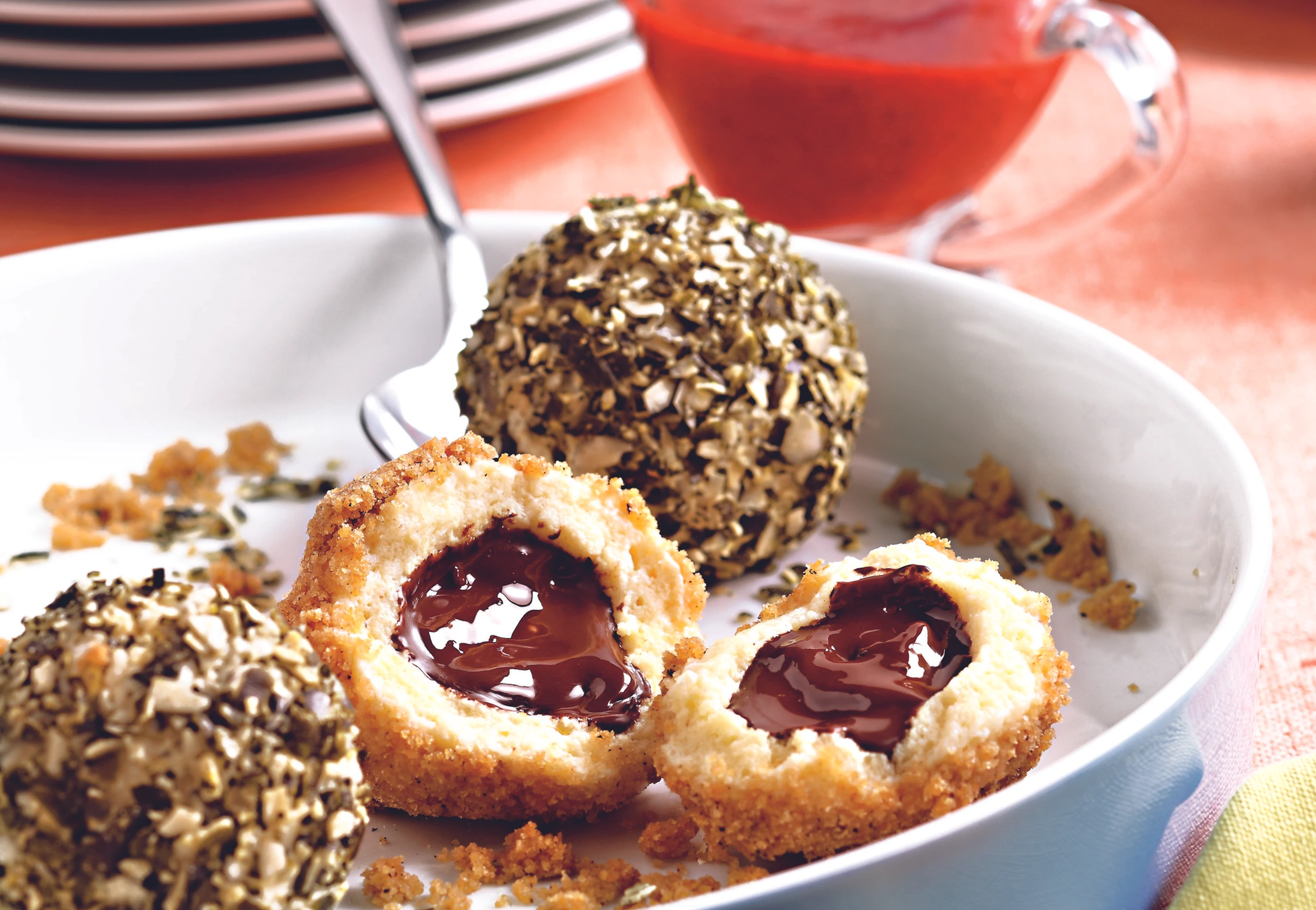 Schoko Knödel mit Erdbeer Sauce