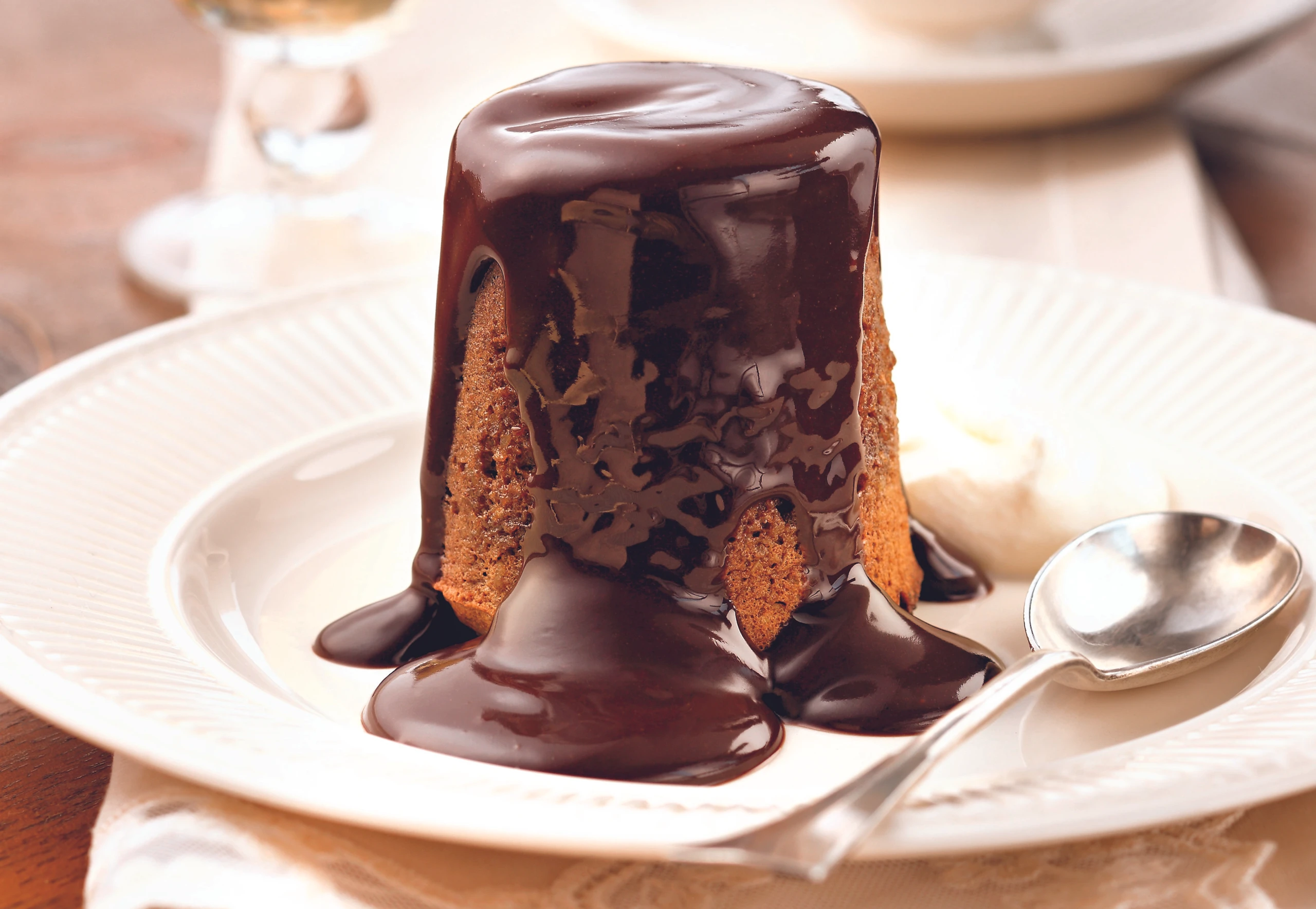 Für die Garnitur Obers schlagen. Aufläufe auf Teller stürzen, mit Schokosauce und Obers garniert servieren.