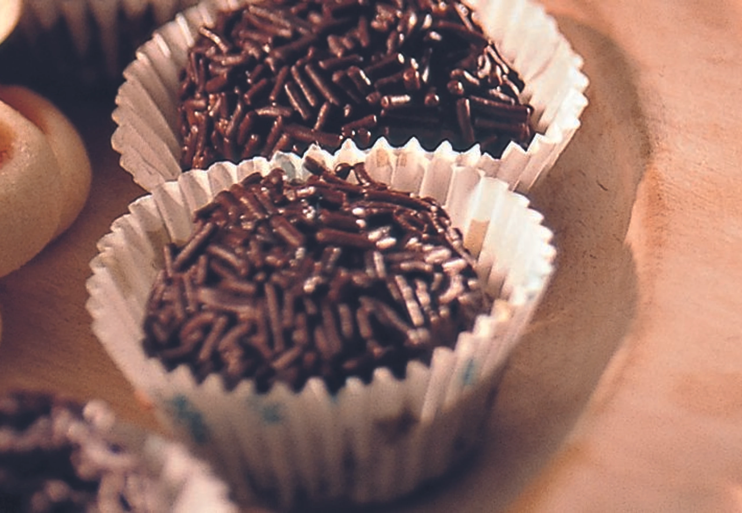 Aus der Masse gleichgroße Kugerl formen, in Schoko-Streusel wälzen, in kleine Papier-Manschetten setzen und für ca. 1 Stunde kaltstellen.