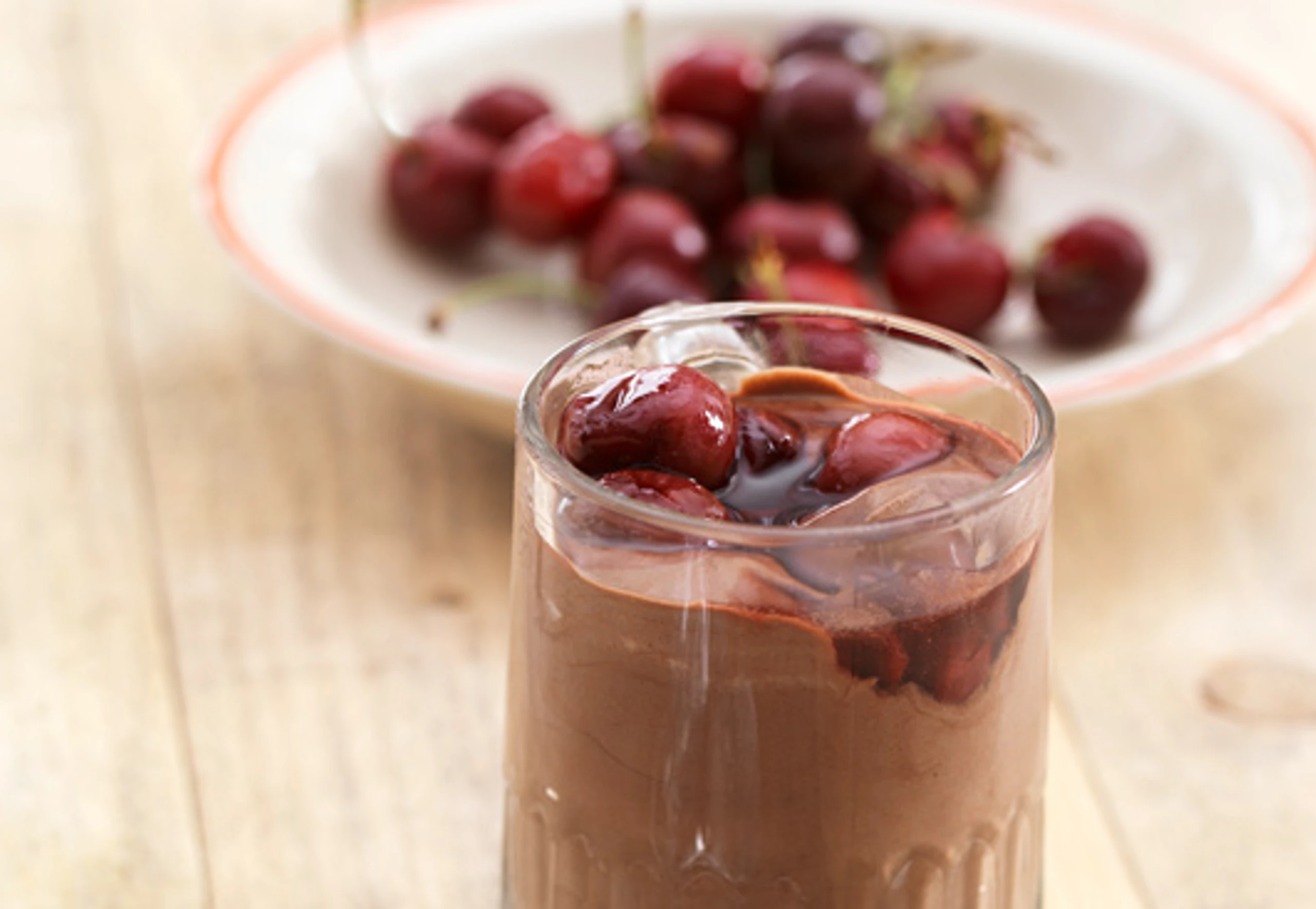 Kirschen entkernen. Rotwein und Zucker aufkochen, Kirschen zugeben und dick einkochen (ca. 20 Minuten). Kirschen auskühlen lassen. Schokocreme mit den Rotweinkirschen servieren.