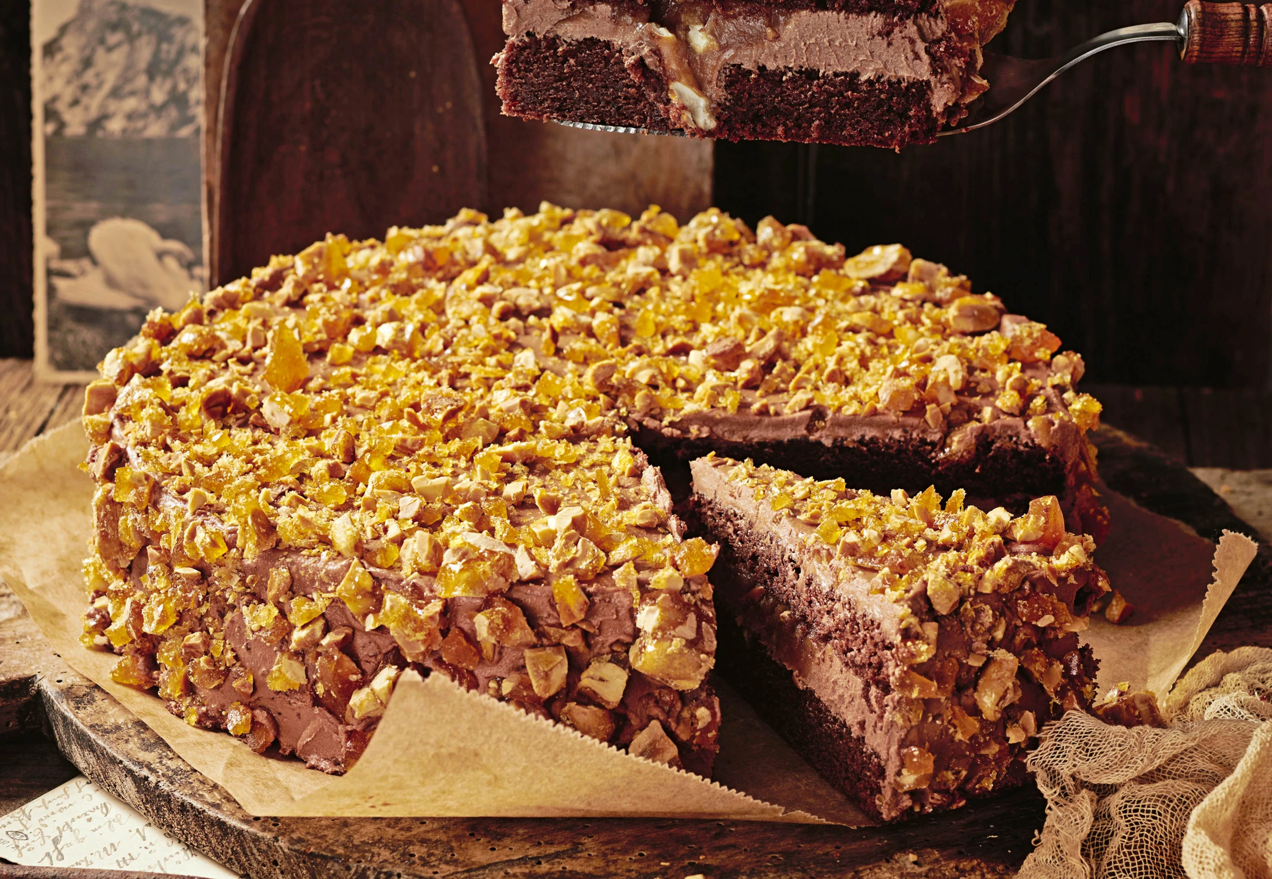 Schokolade-Fondant-Torte mit Erdnuss-Krokant
