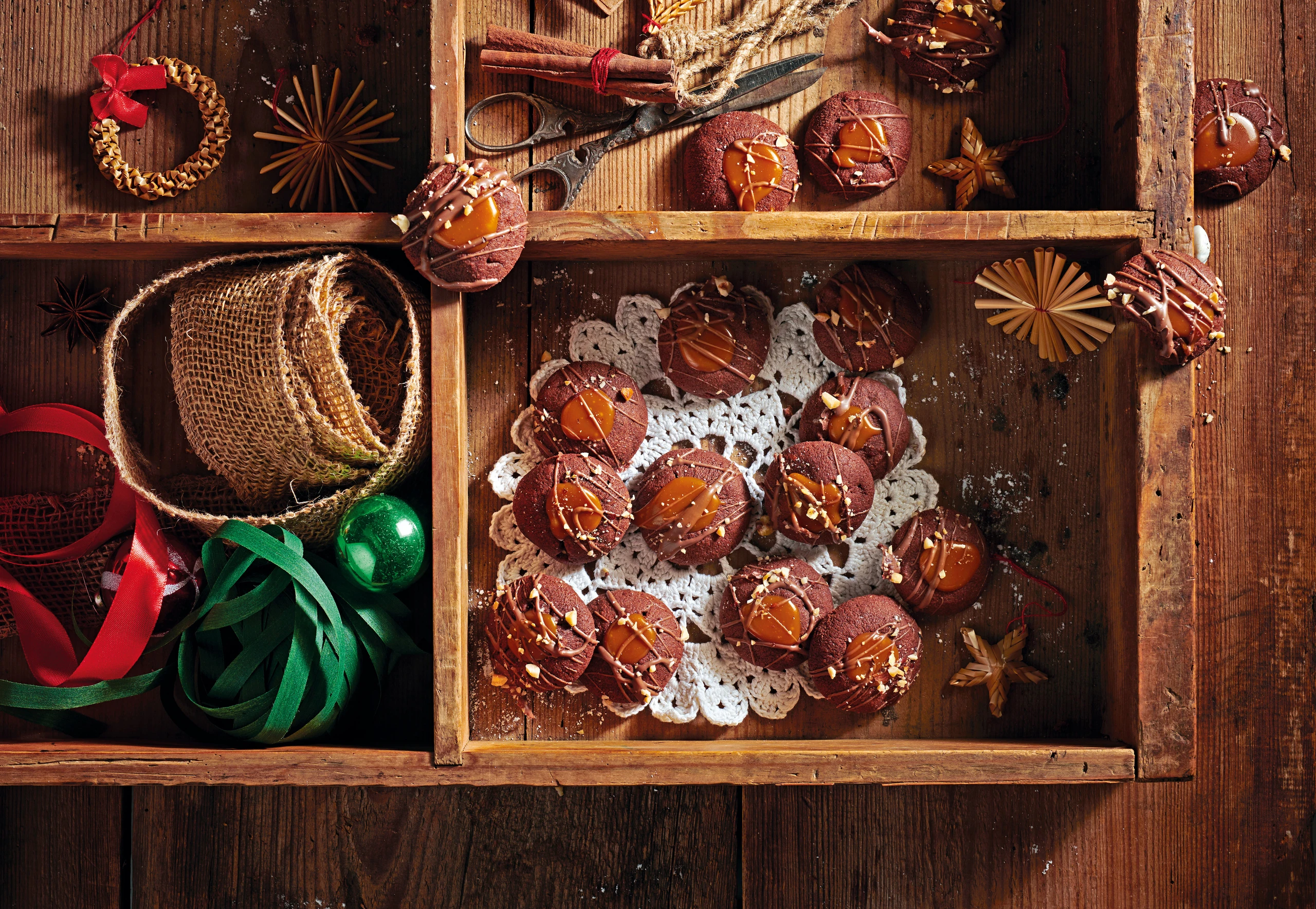 Für die Fülle Zucker karamellisieren. Butter zugeben und schmelzen lassen. Mit Obers aufgießen. Karamell ca. 5 Minuten köcheln und vom Herd nehmen. Karamell in die Mulden der Krapferl füllen.