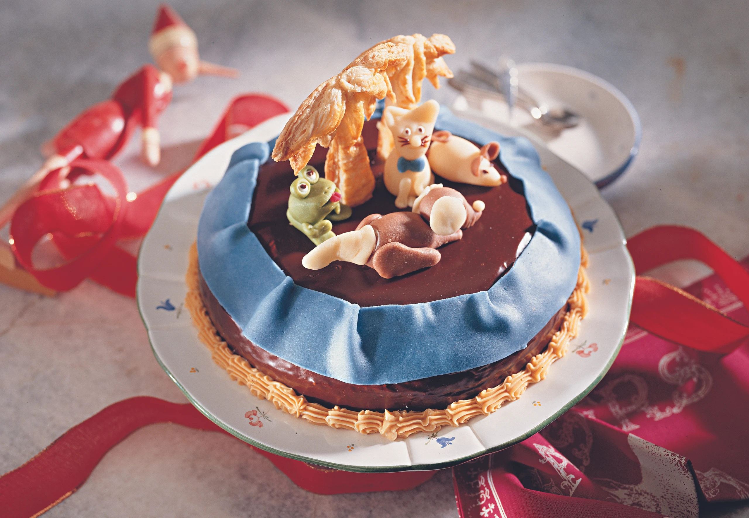 Zum Anrichten Torte mit der übrigen Creme garnieren, mit Dekostücken dekorieren.
