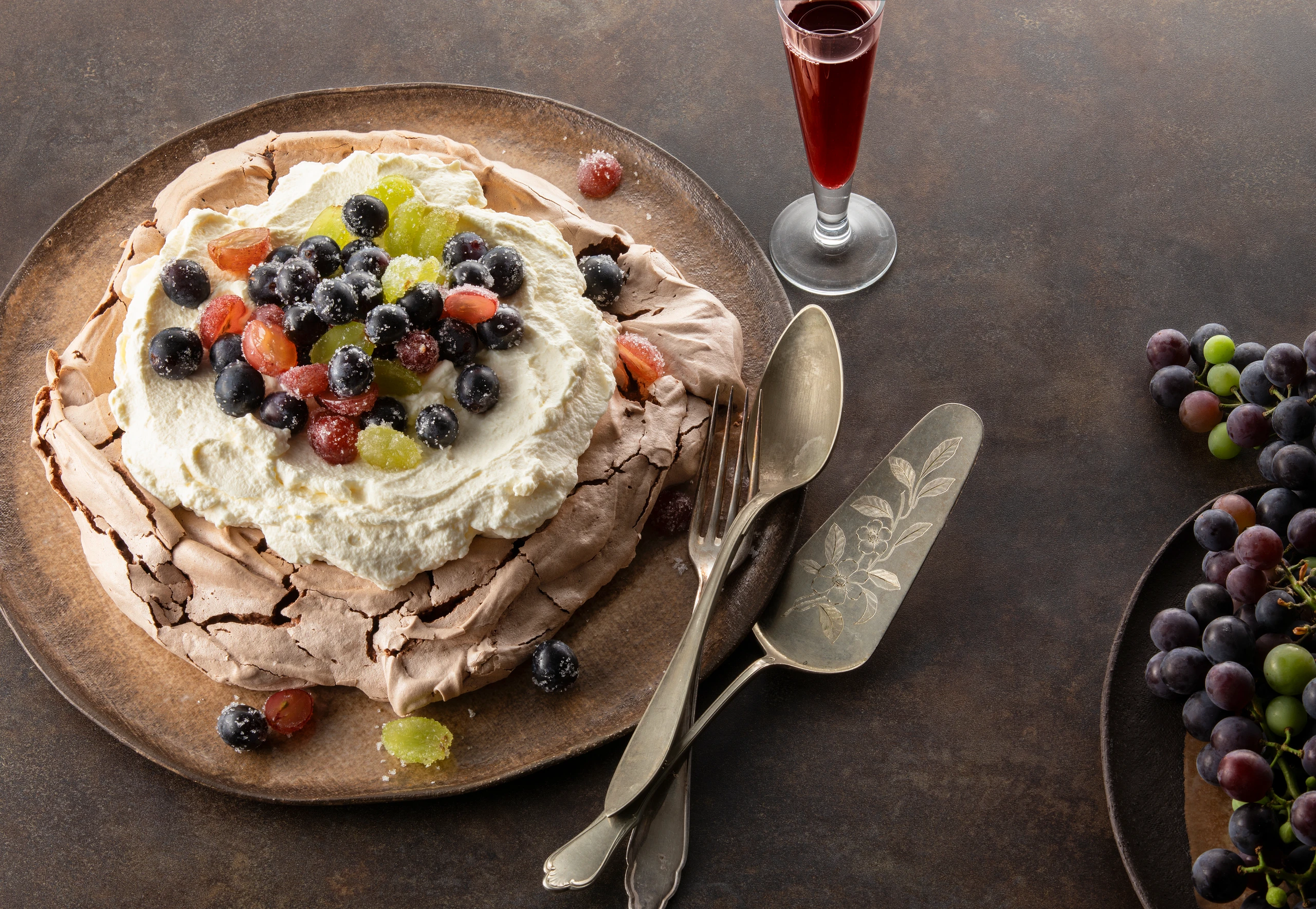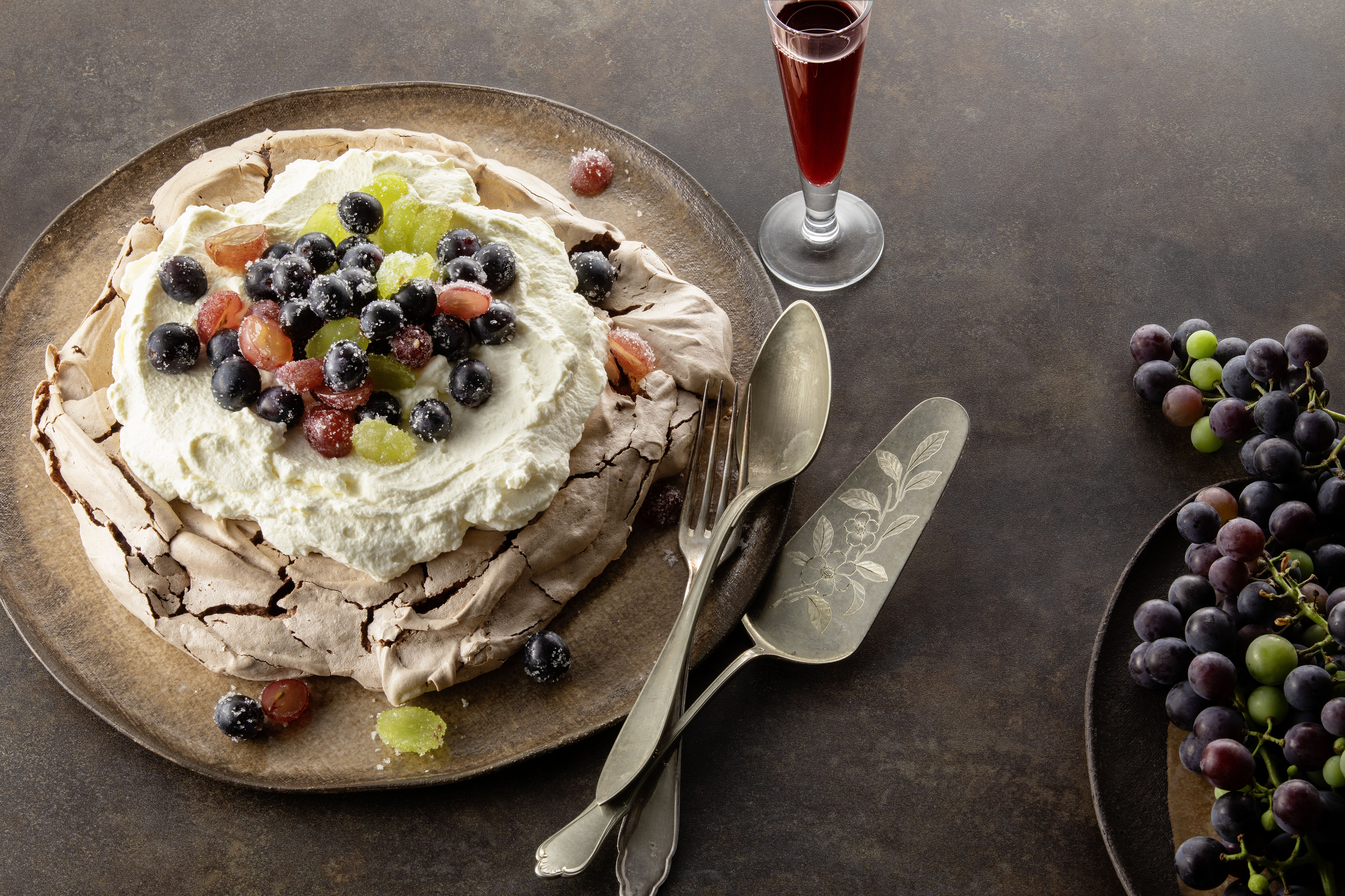 Schokolade-Pavlova mit Trauben