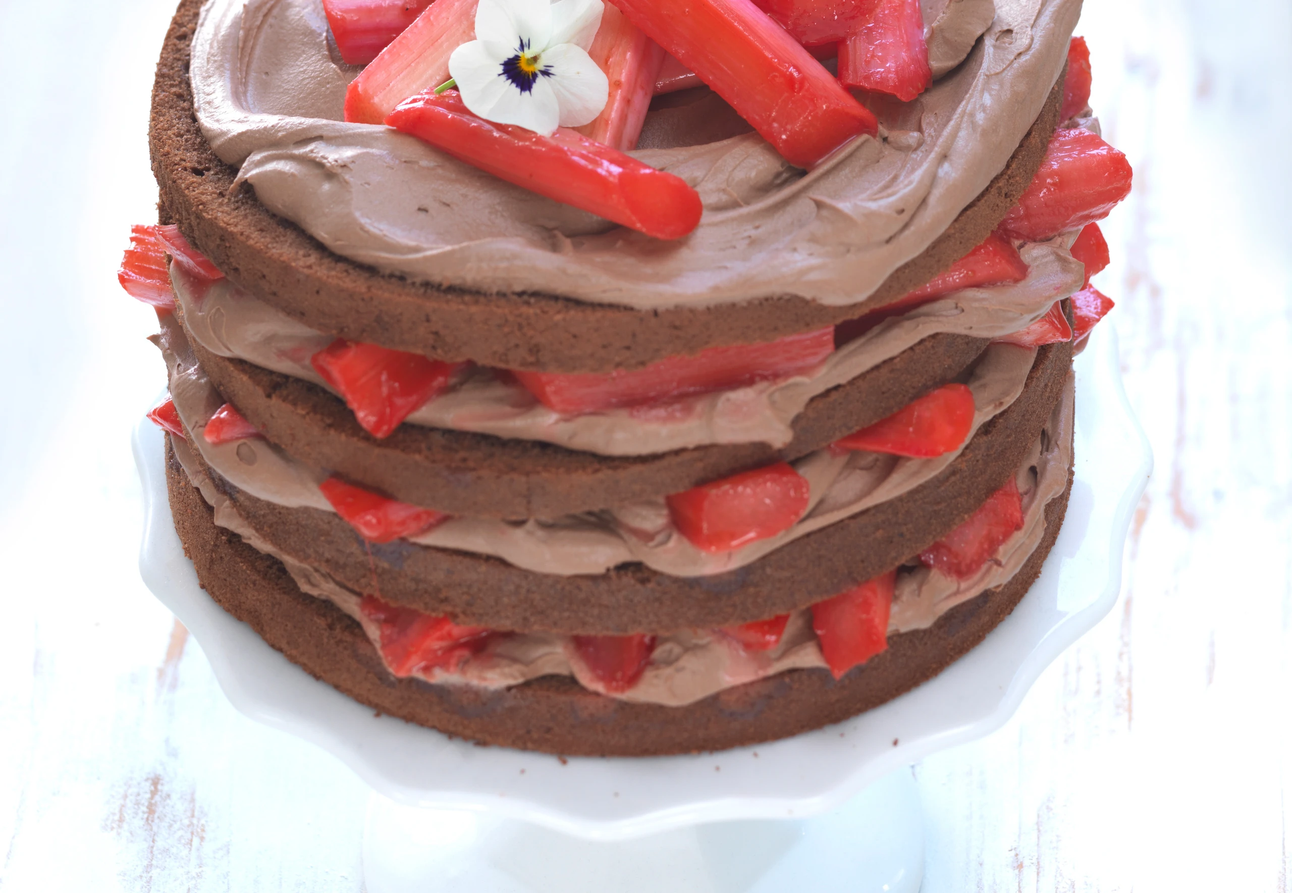 - Creme mit einem Schneebesen behutsam dickcremig aufrühren. Torte aus der Form stürzen und dreimal horizontal durchschneiden. Böden mit Creme bestreichen, mit Rhabarber belegen und übereinandersetzen. Jeden Boden behutsam andrücken. Torte eventuell mit Blüten garnieren.