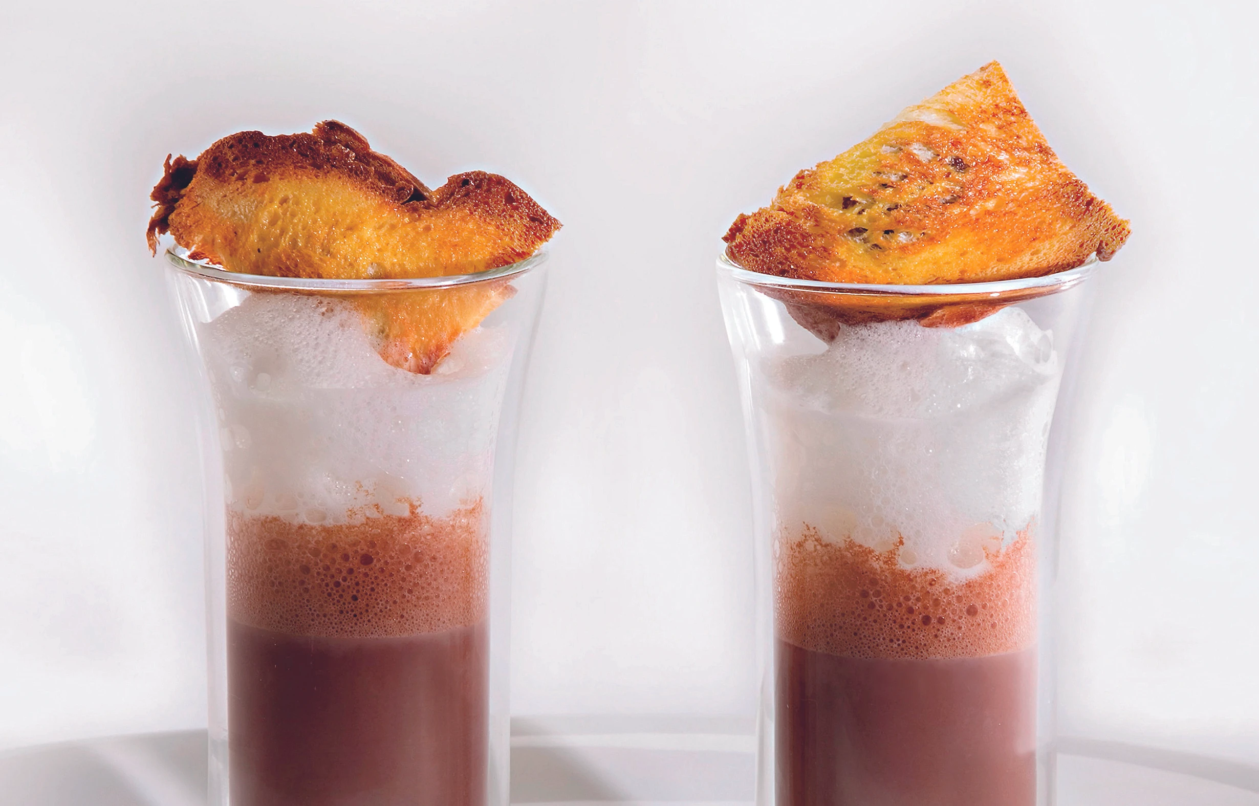 Milch, Stärke und Salz verrühren und aufkochen. Schokolade mit dem Stabmixer einrühren. Masse mit Kardamom oder Chili würzen, in angewärmte Gläser füllen, eventuell mit Milchschaum dekorieren. Dazu passt Schoko-Brioche.