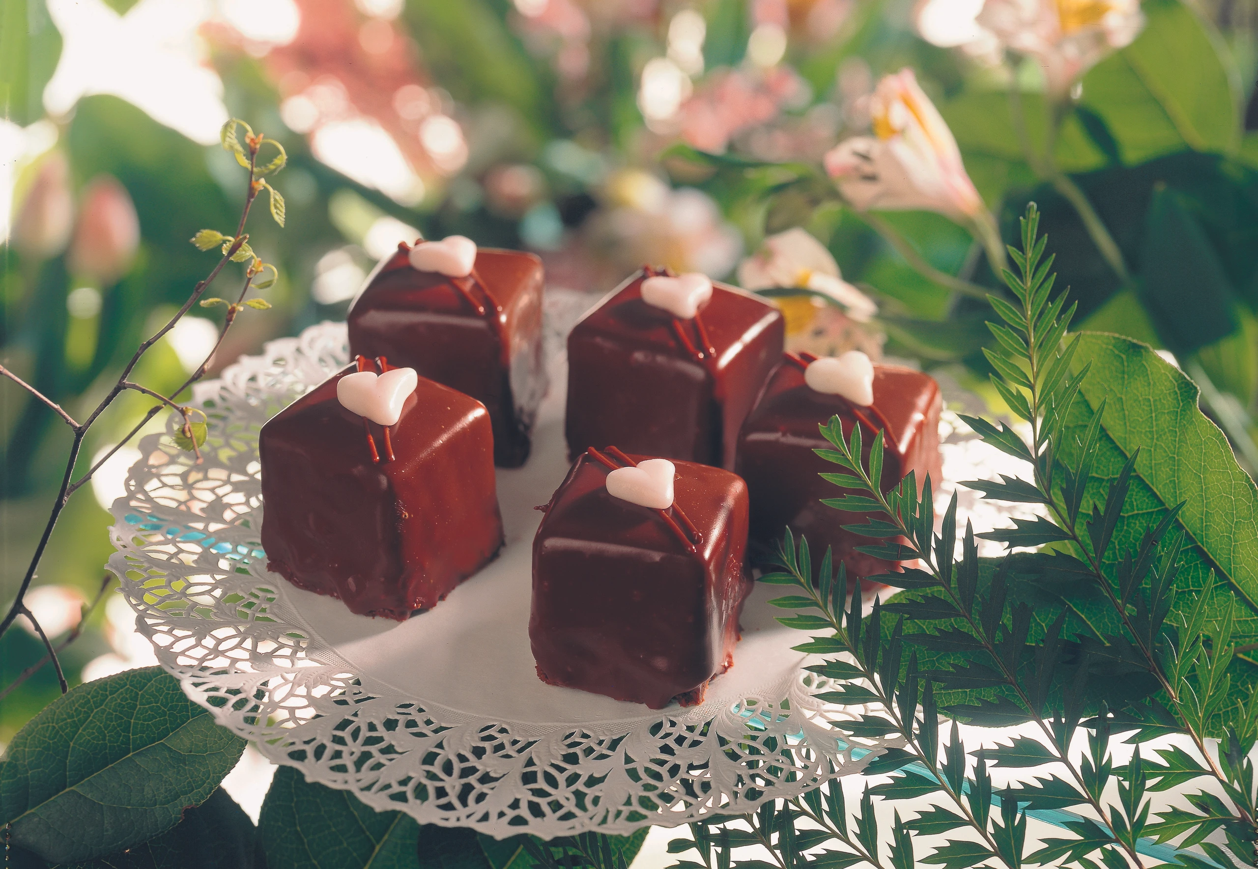 Marmelade durch ein feines Sieb streichen, gut verrühren und die Tortenwürfel damit rundum einstreichen. Couverture und Fondant separat über Wasserdampf schmelzen (die Temperatur sollte 40° nicht überschreiten) und anschließend vermischen. Sollte die Glasur zu dick sein, kann man sie mit ein paar Tropfen Wasser verdünnen.