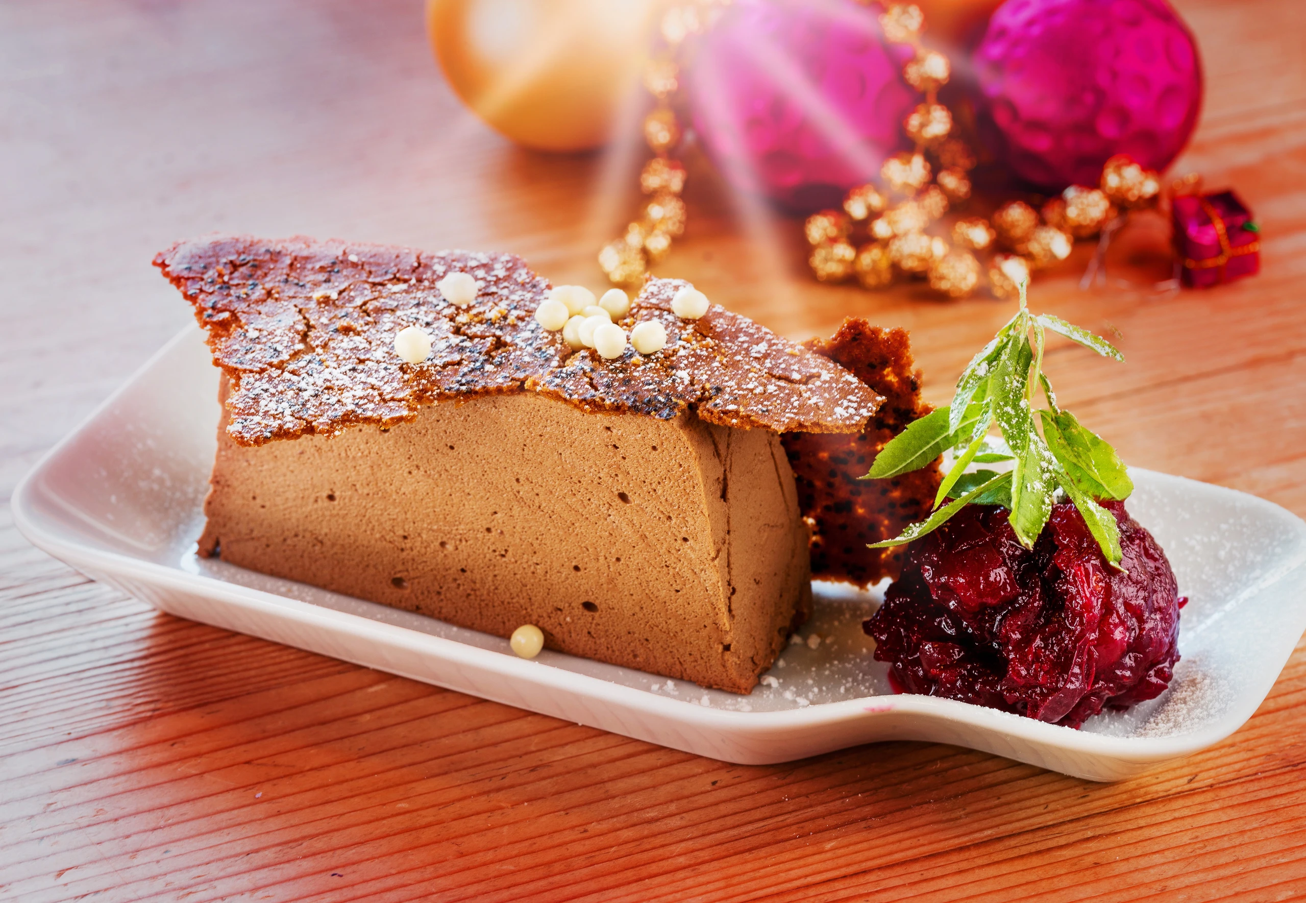 - Marquise aus der Form stürzen, Folie entfernen. Marquise in Scheiben schneiden, anrichten und mit Kompott, Hippen und Schokolinsen servieren. Eventuell mit Staubzucker bestreuen und mit Zitronenverbene garnieren.