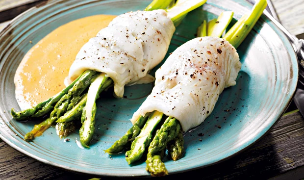 Schollen-Spargelröllchen