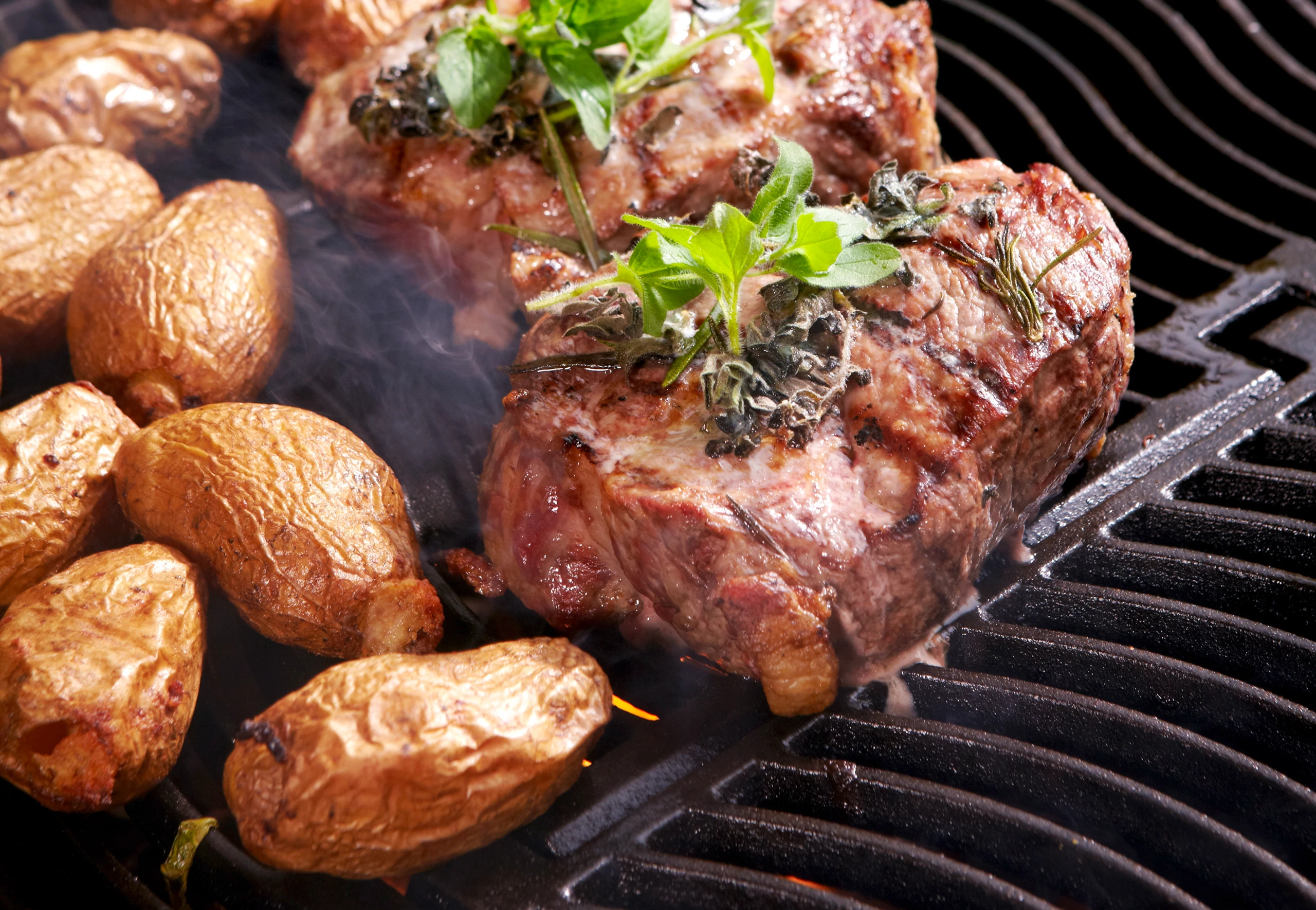 Erdäpfel an den Glutrand (neben die Kohlekörbe) legen und indirekt ca. 45 Minuten grillen.
