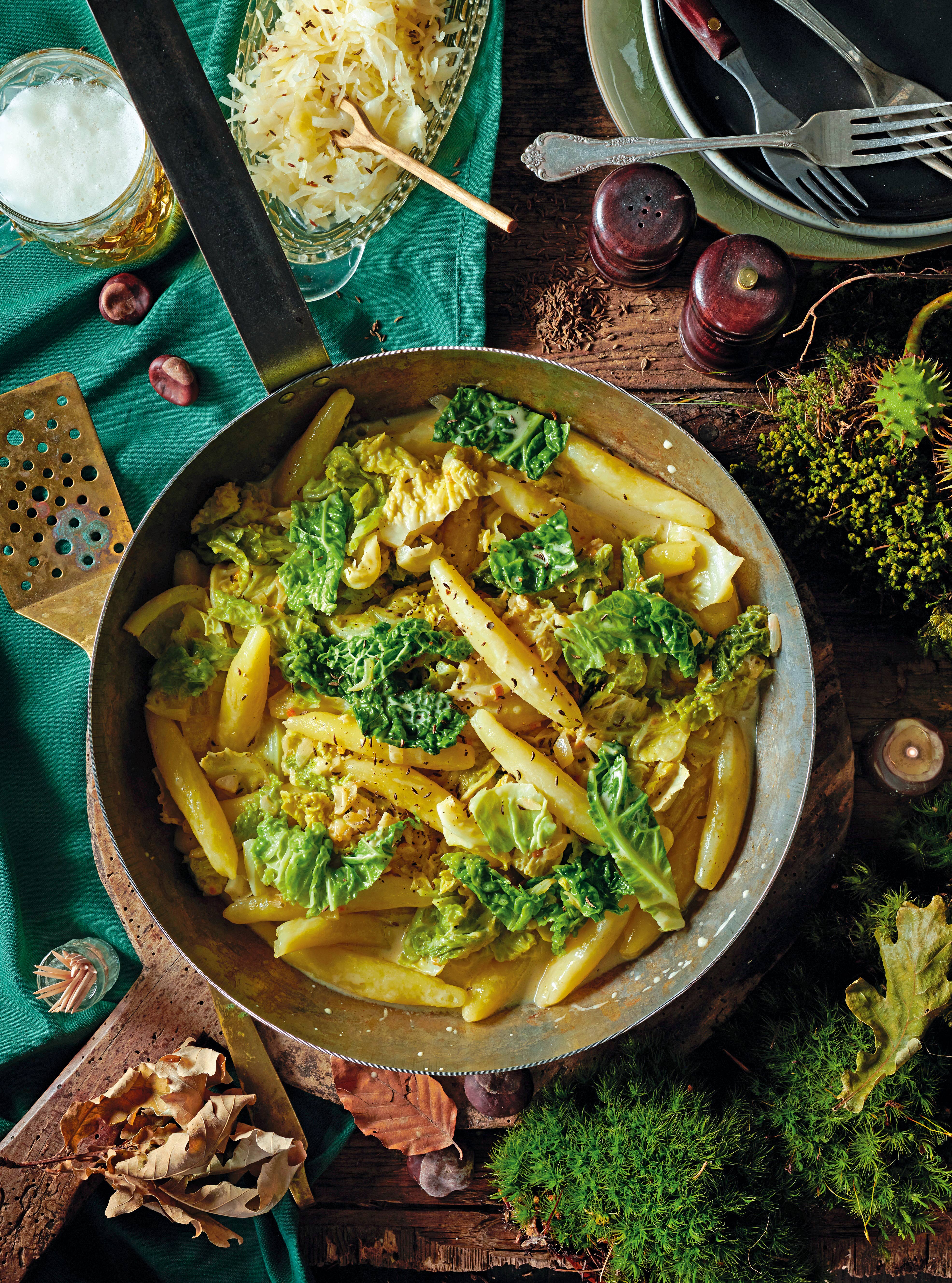 Schupfnudelpfanne mit Kohl und Bergkäse