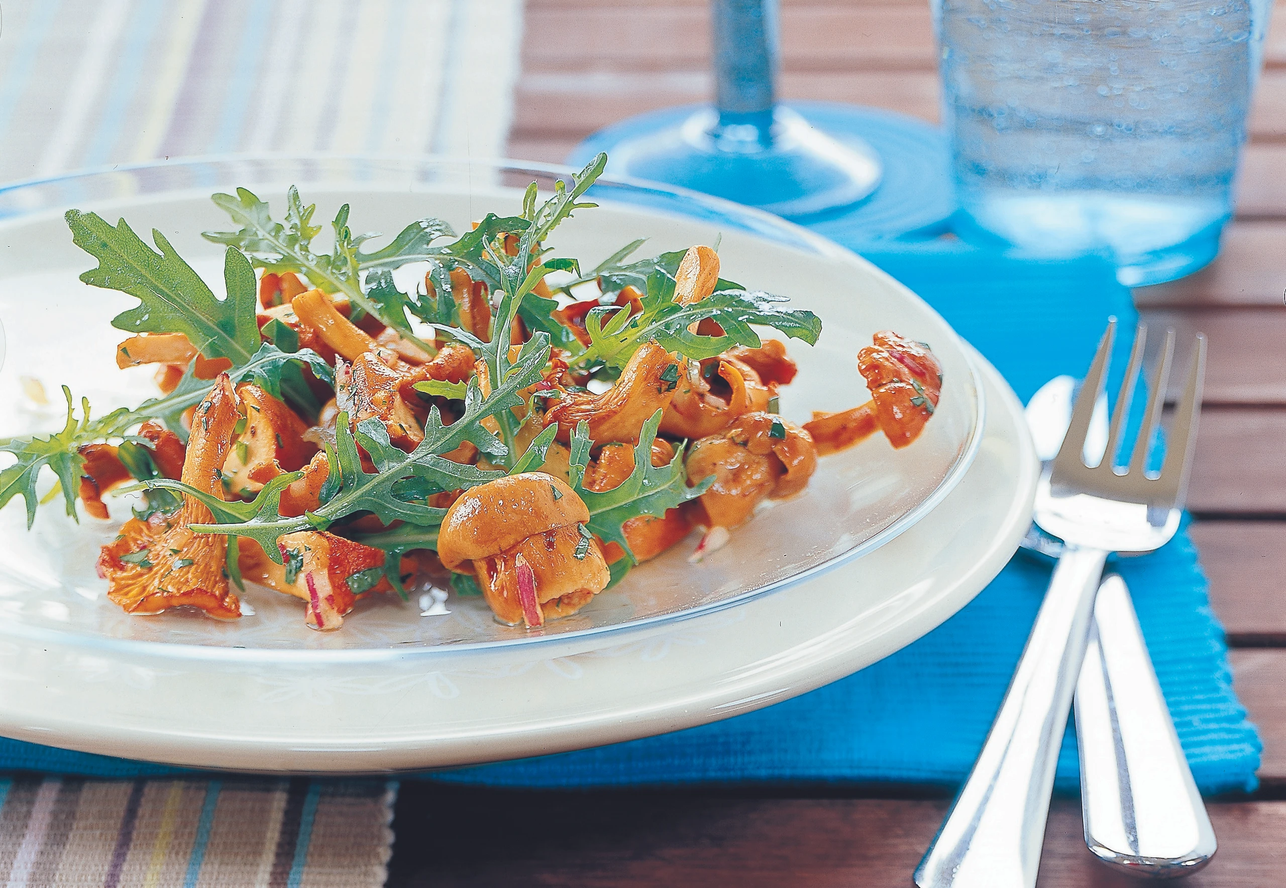 - Rucola putzen und untermischen, Salat anrichten und rasch servieren.