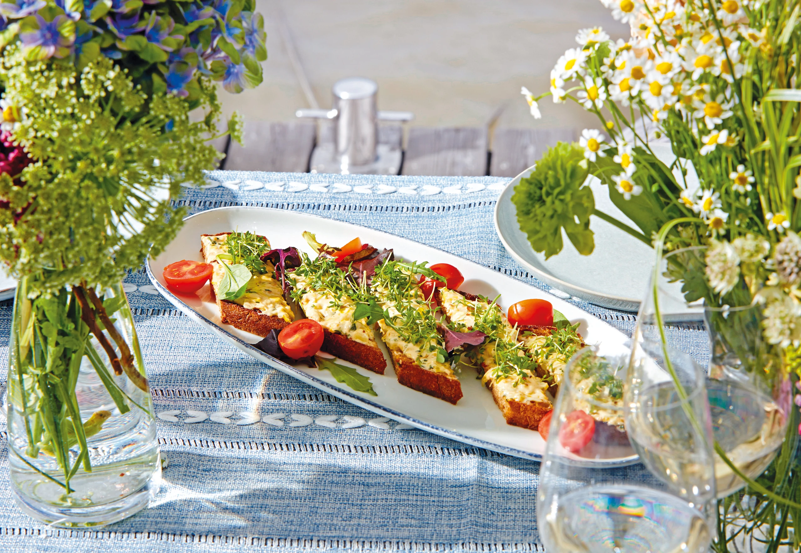 Gegrillte Schwarzbrottoasts mit Lauchmayonnaise