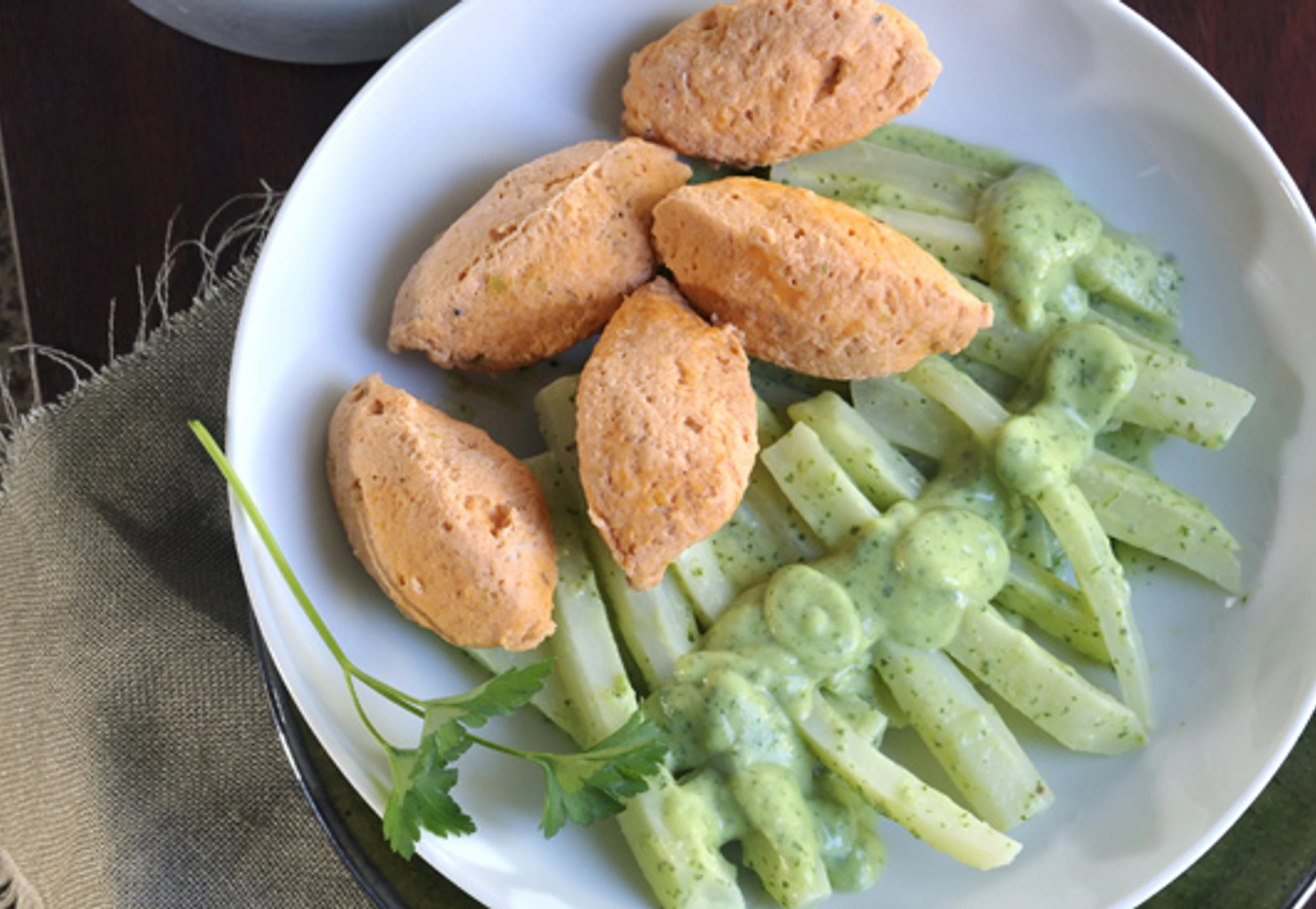 Schwarzwurzeln in Petersilsauce mit Lachs-Nockerln