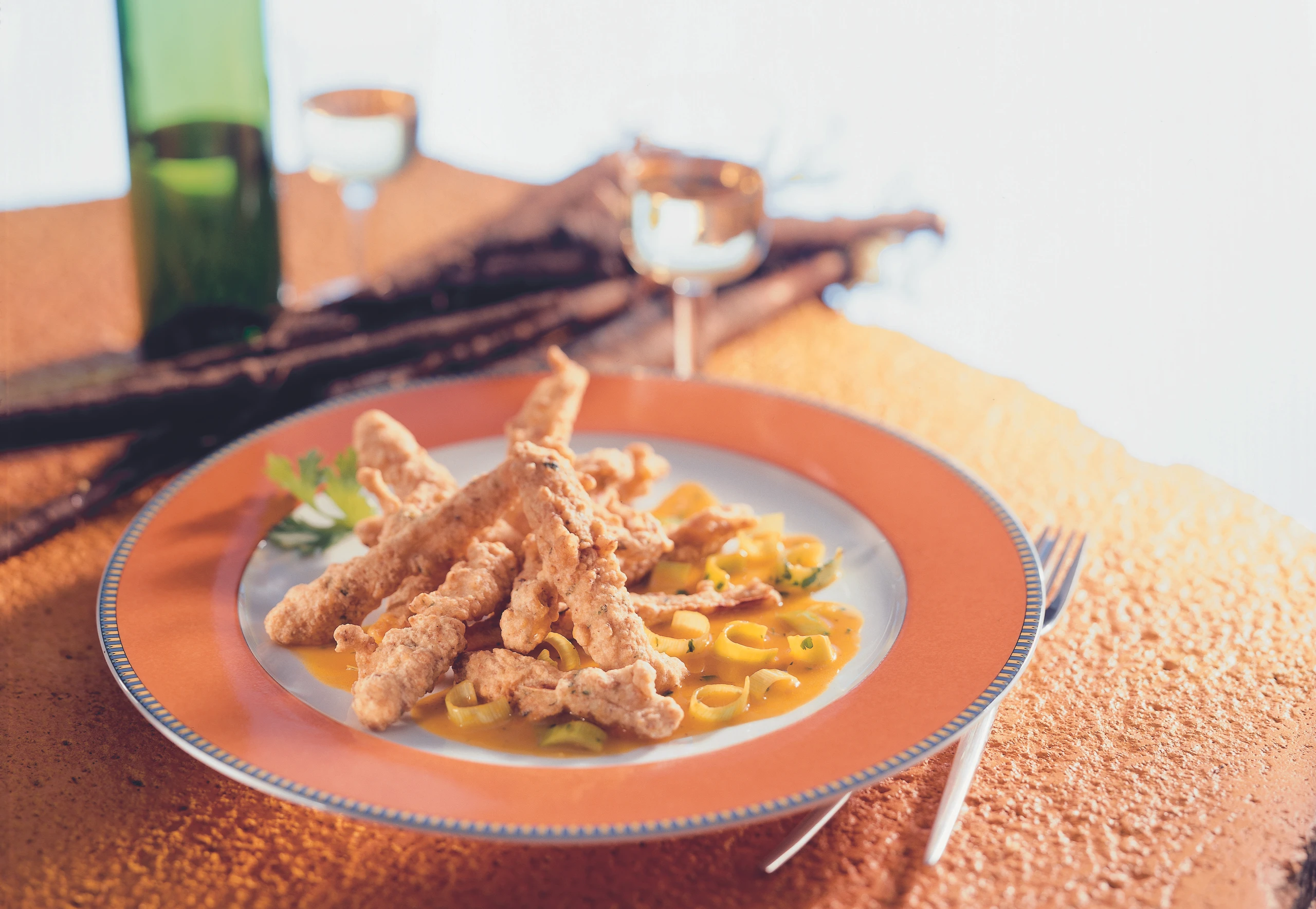 Ca. 3 Finger hoch Öl erhitzen, Schwarzwurzeln einzeln durch den Backteig ziehen und im heißen Öl goldgelb backen, herausheben und auf Küchenpapier abtropfen lassen. Die gebackenen Schwarzwurzeln mit der Karotten-Currysauce servieren.