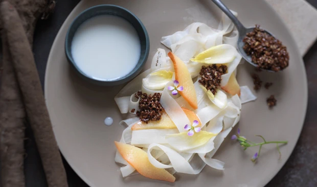 Schwarzwurzelsalat mit Quitte und Leinsamen