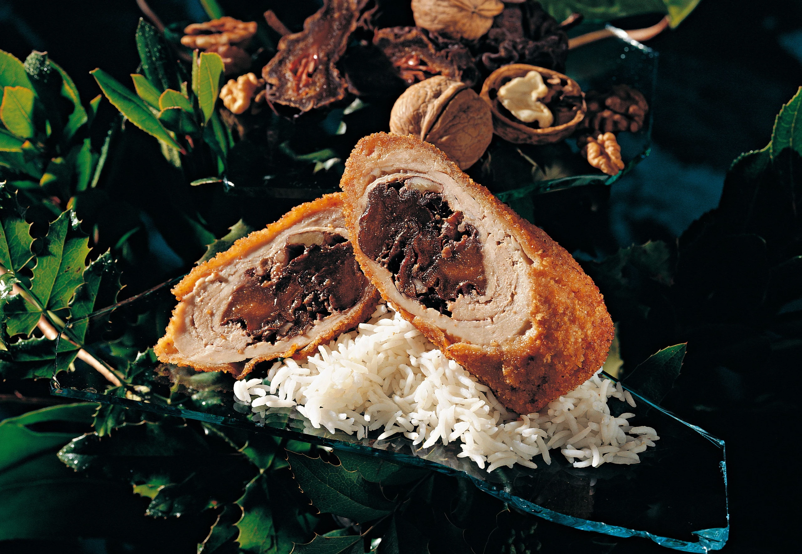 Mindestens dreifingerhoch Backfett erhitzen. Eier mit Milch verquirlen. Rouladen in Mehl, Eimischung und Bröseln panieren, ins heiße Fett legen und goldgelb backen. Rouladen mit einem Siebschöpfer aus dem Fett heben und gut abtropfen lassen. Rouladen von den Zahnstochern befreien und in gleichdicke Scheiben schneiden. Als Beilage paßt Reis.