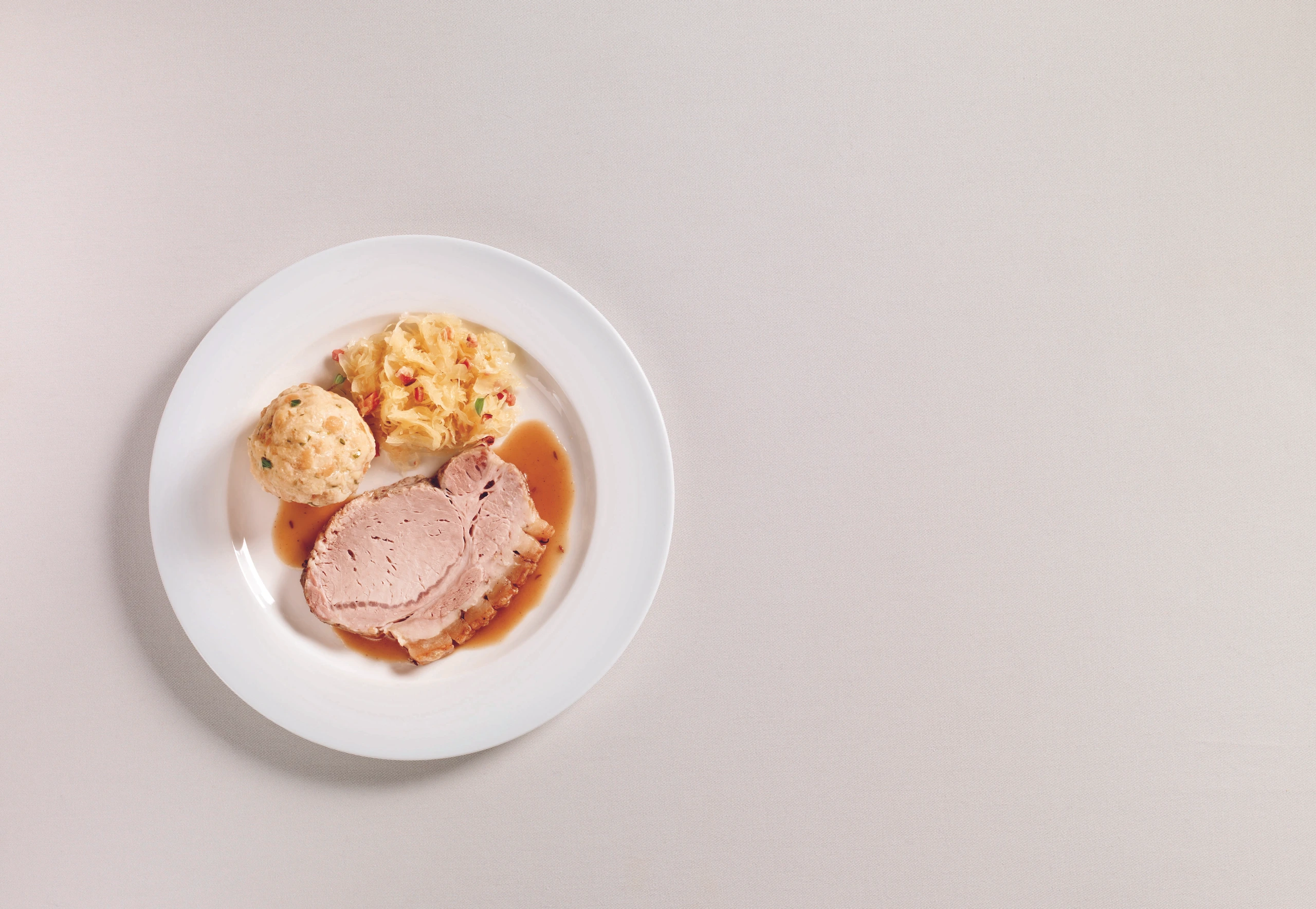 Schweinsbraten mit Semmelknödeln und Biersaft