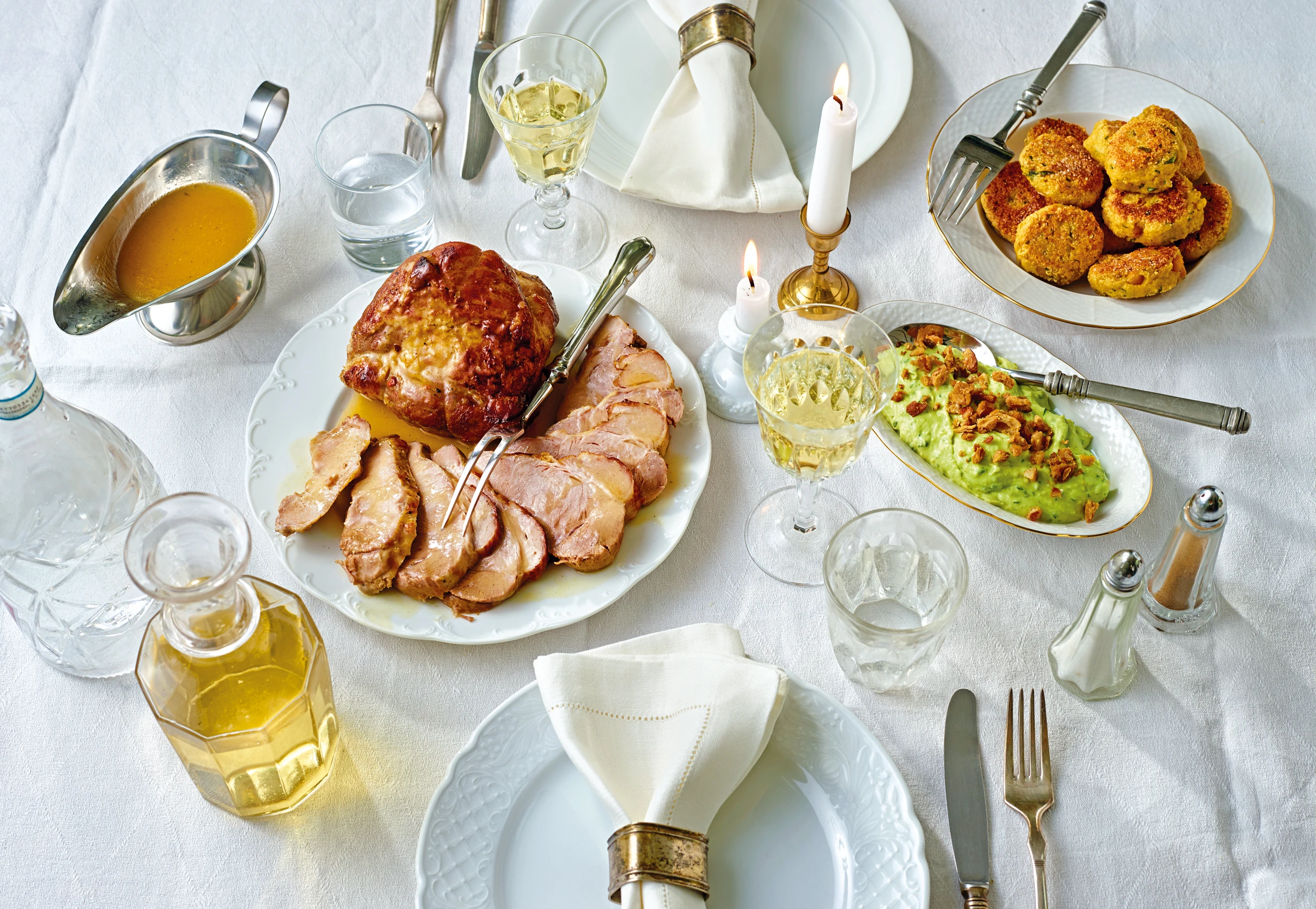 Schweinsbraten mit Avocadocreme und Kichererbsenpuffern
