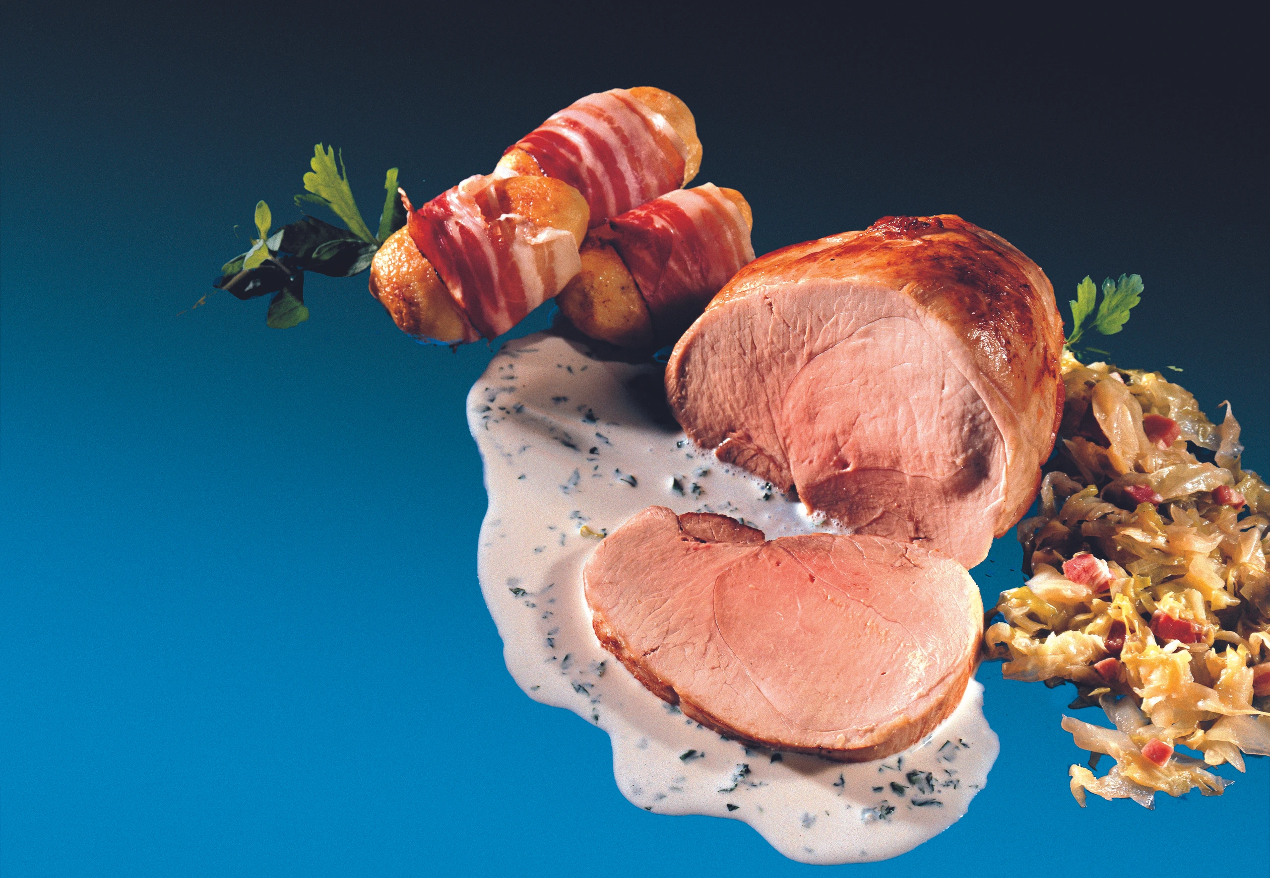 Schweinsbraten mit Knoblauch-Mandelsauce