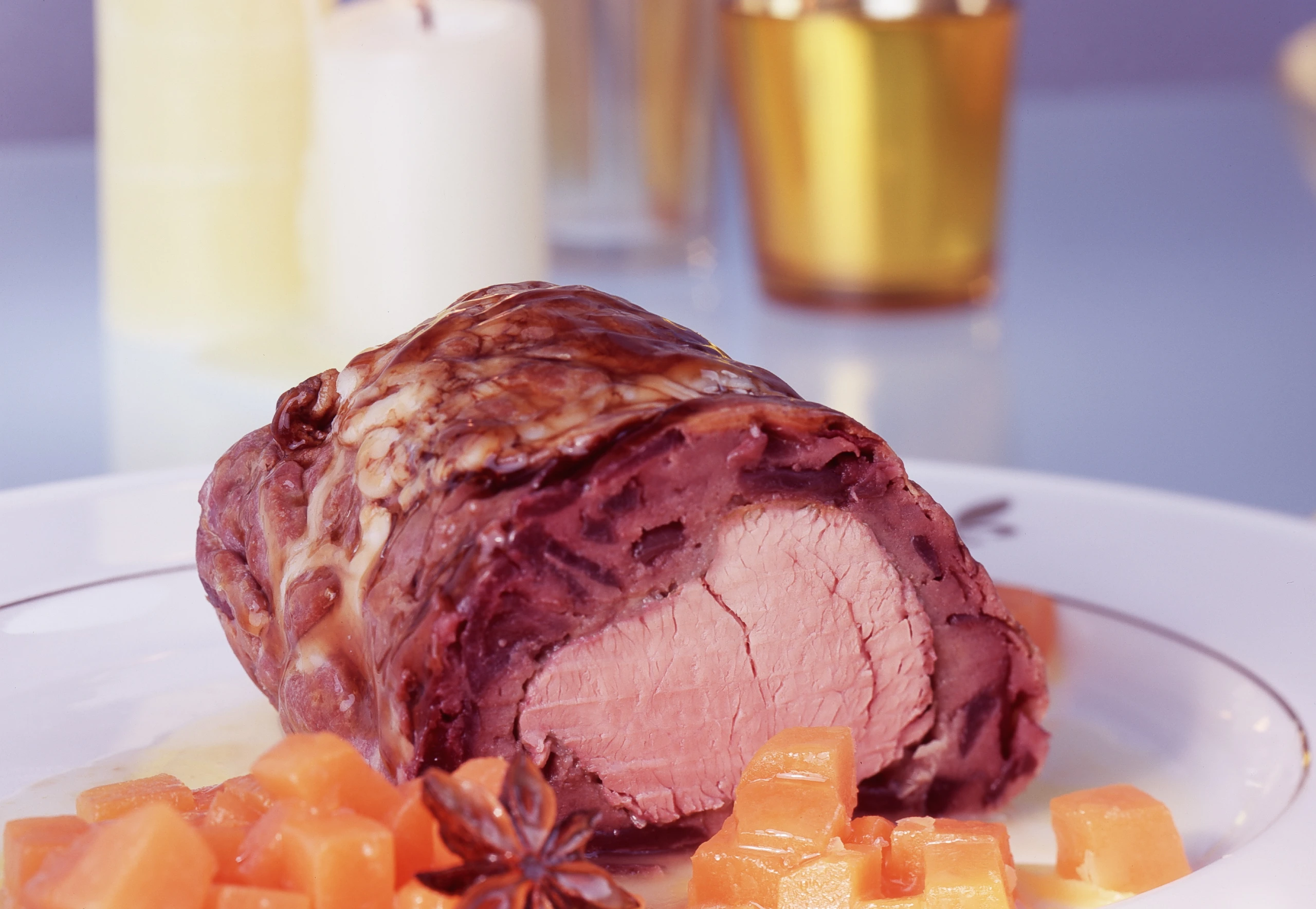Schweinsfilet in Zwiebelhülle mit Aniskürbis