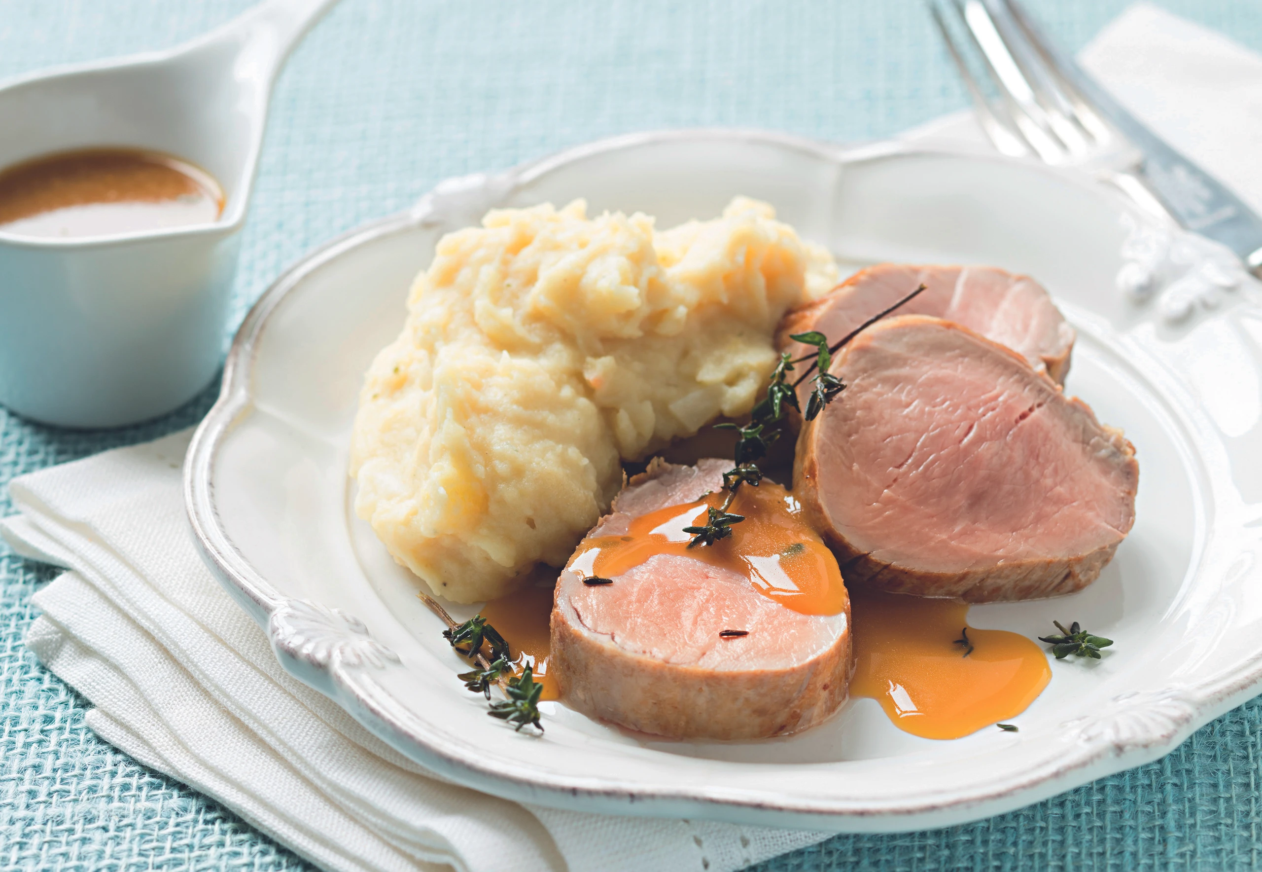 Schweinsfilet mit Mangosauce und Selleriepüree