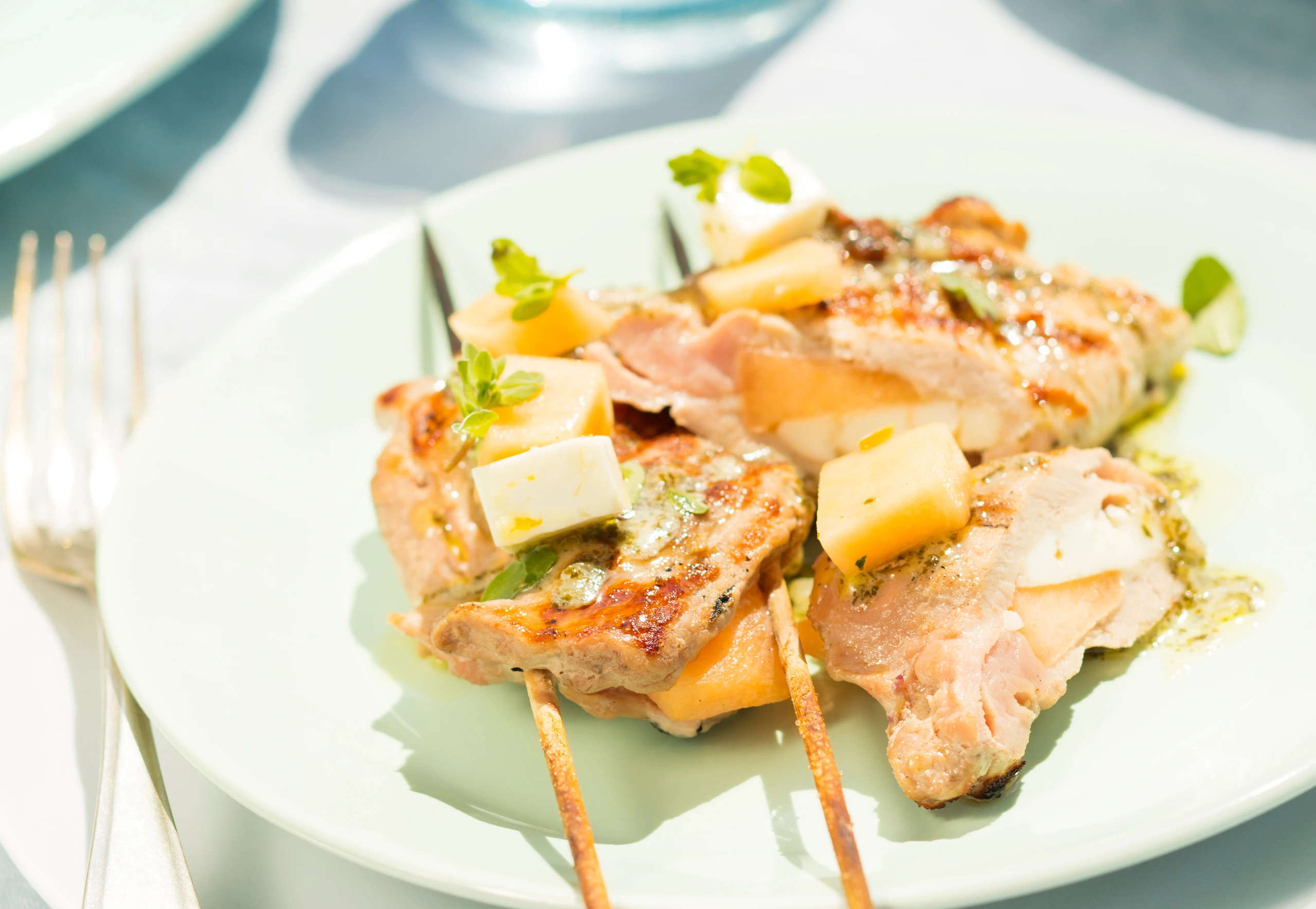 Schweinsfilet mit Melone und Schafkäse