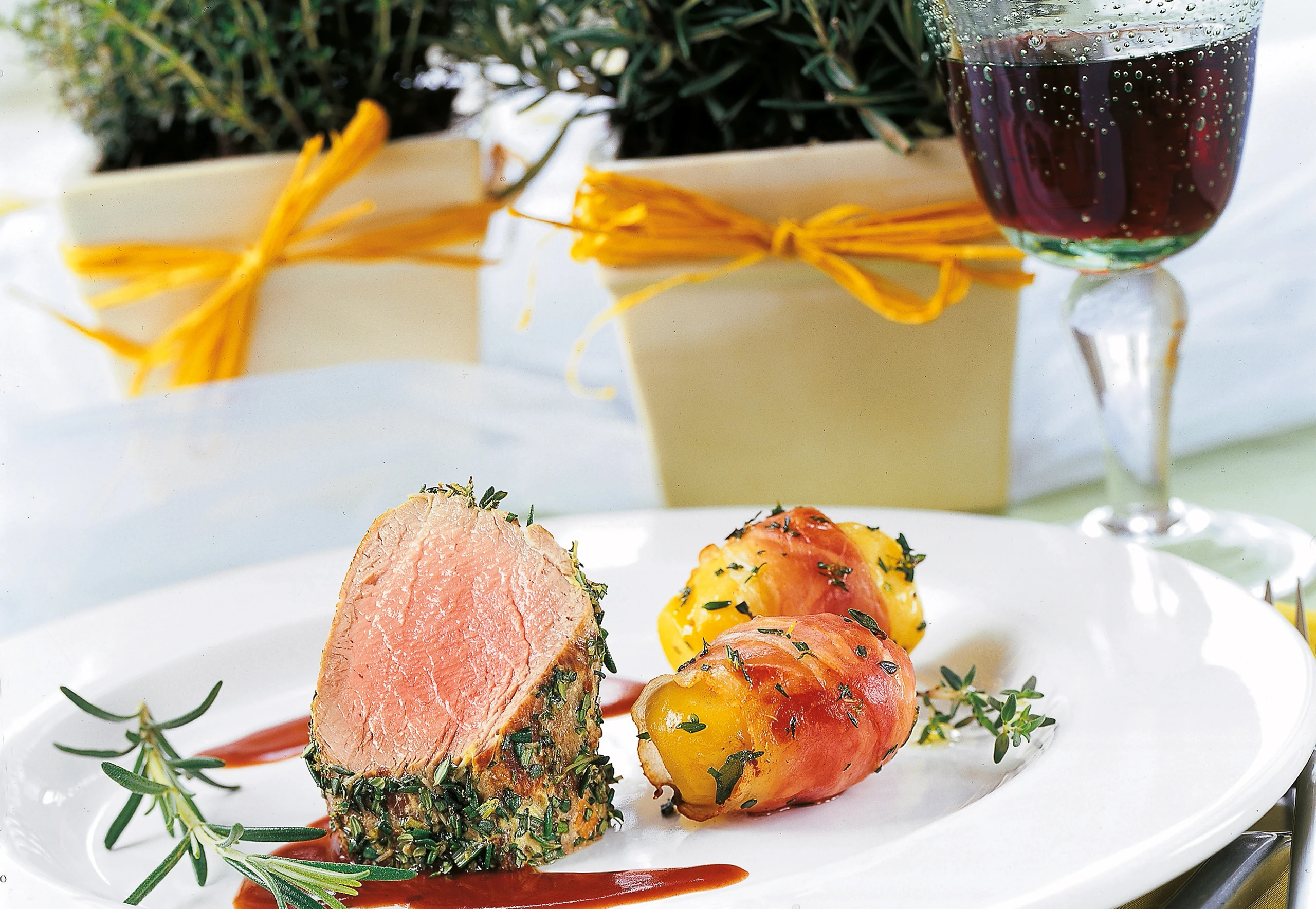 Schweinsfilet mit Rosmarinsauce und Prosciutto-Erdäpfeln