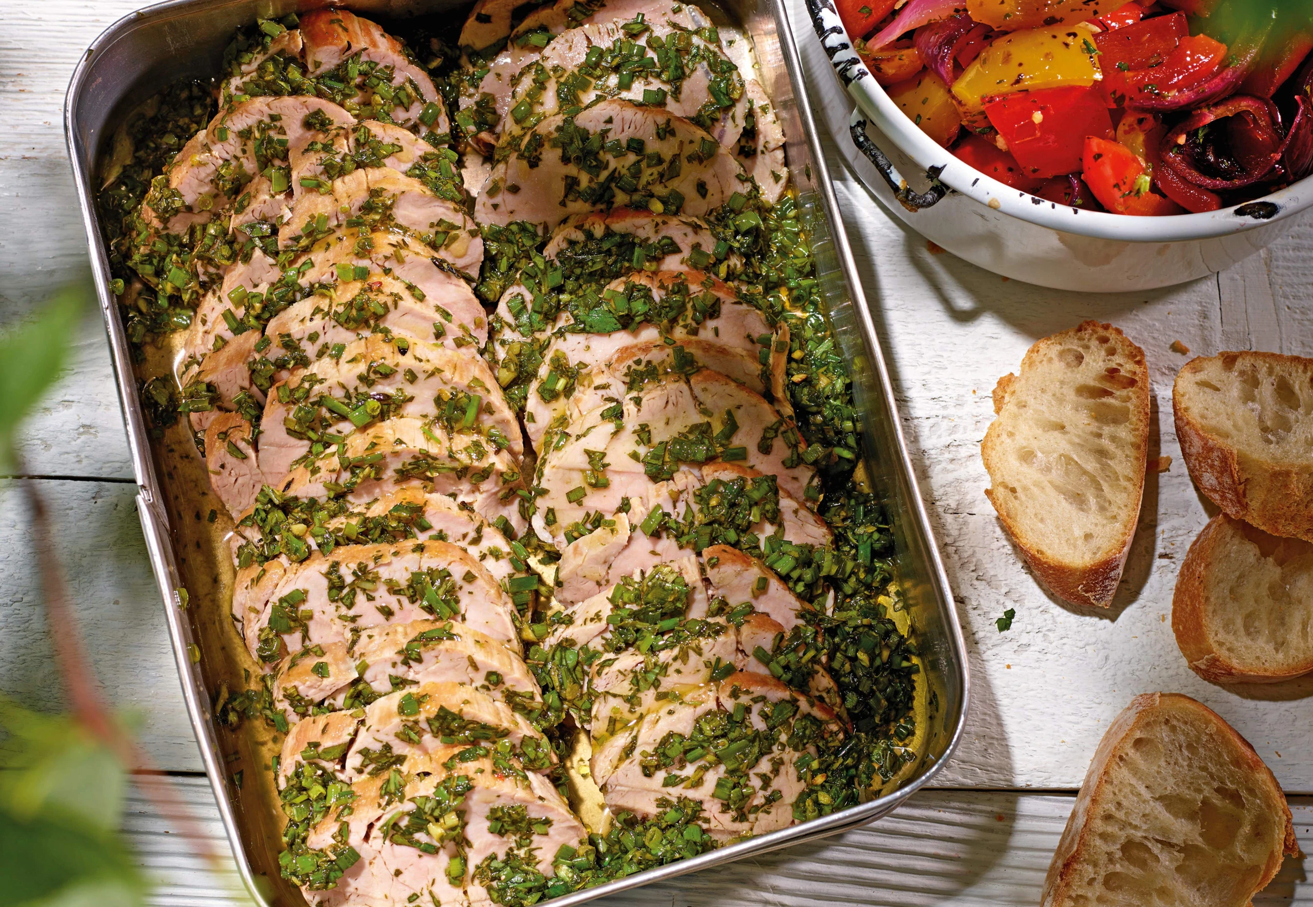 Schweinsfilet mit Salsa Verde und Paprikagemüse