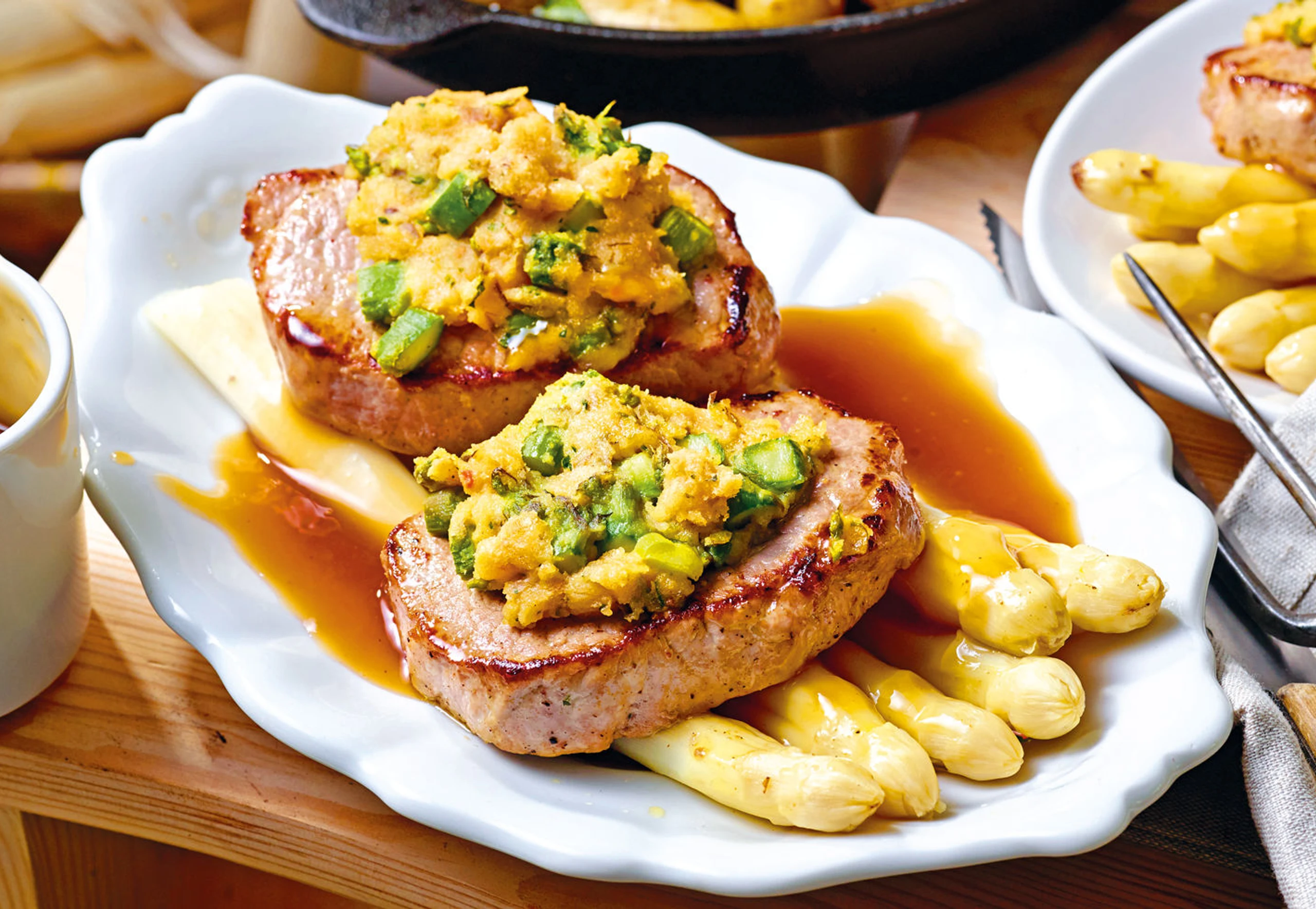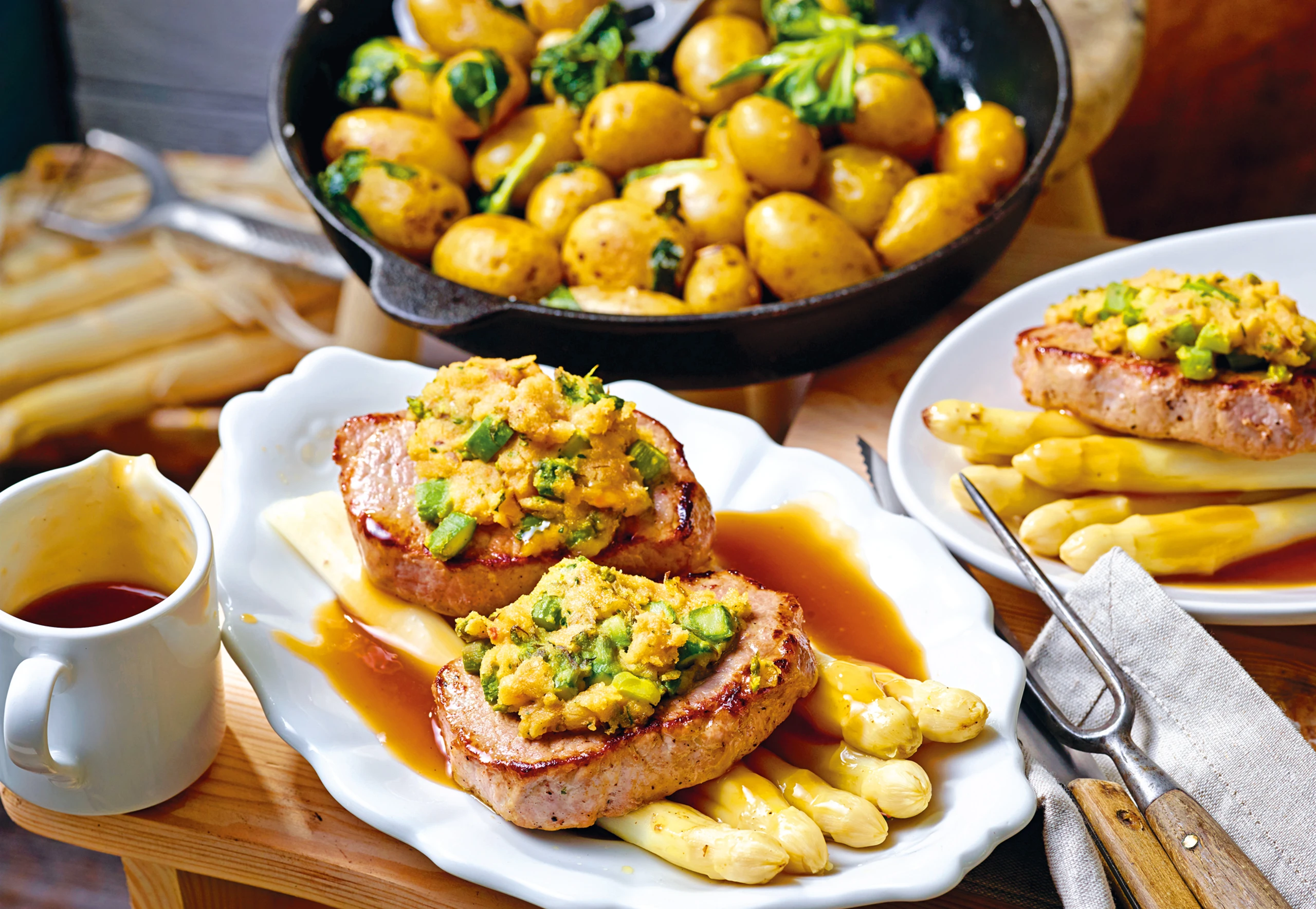 Schweinsfilet mit Spargelkruste und weißem Spargel