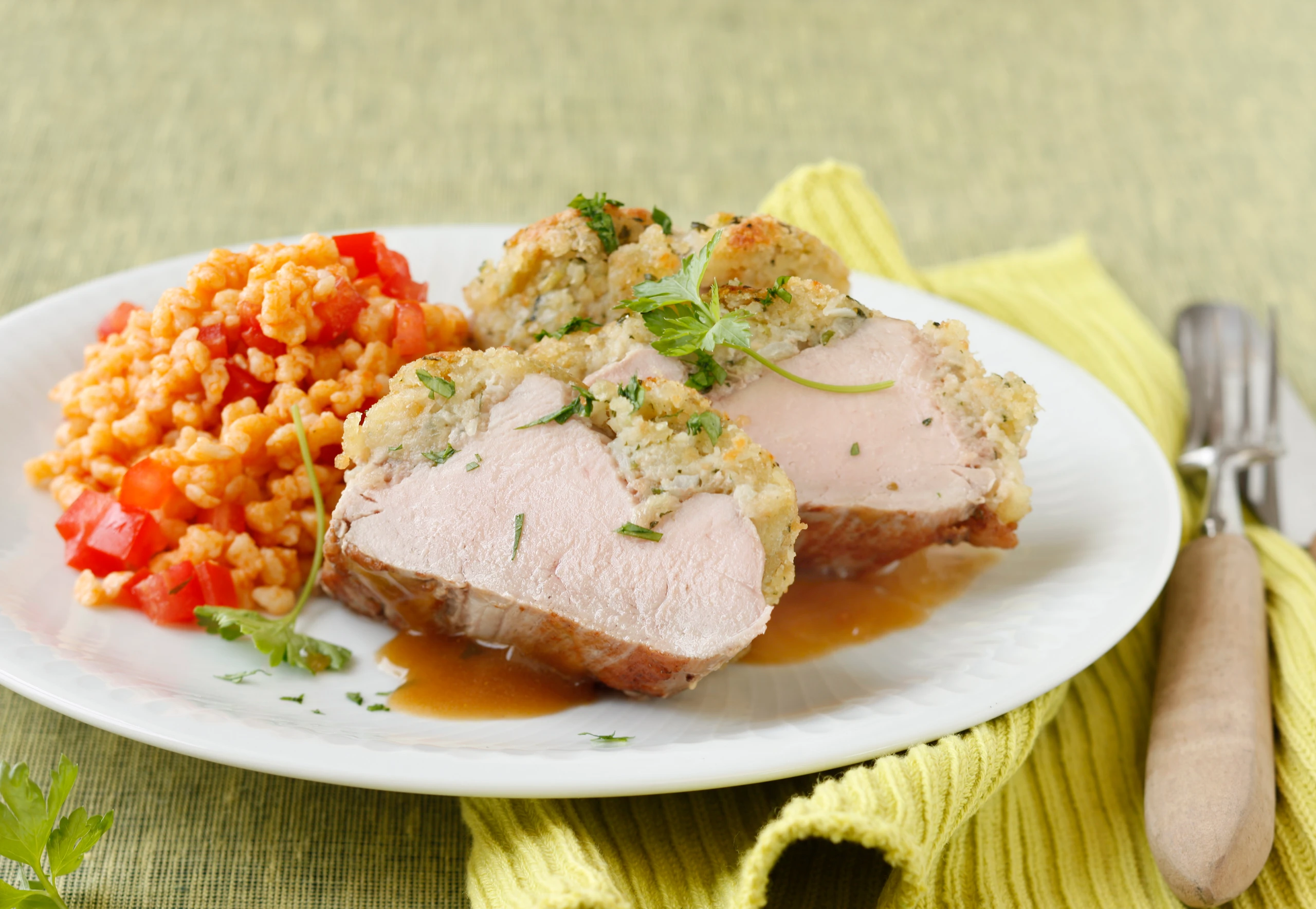 Filet herausnehmen und warm stellen. Im Bratrückstand Bratensaft aufkochen und mit Thymian würzen. Filet aufschneiden, mit Sauce und Tarhonya anrichten.