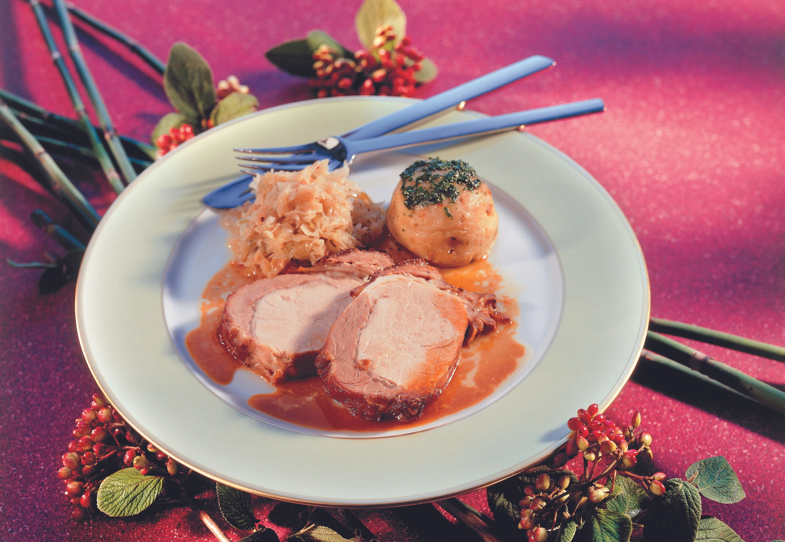 Schweinskarrée mit Sauerkraut und Semmelknödeln