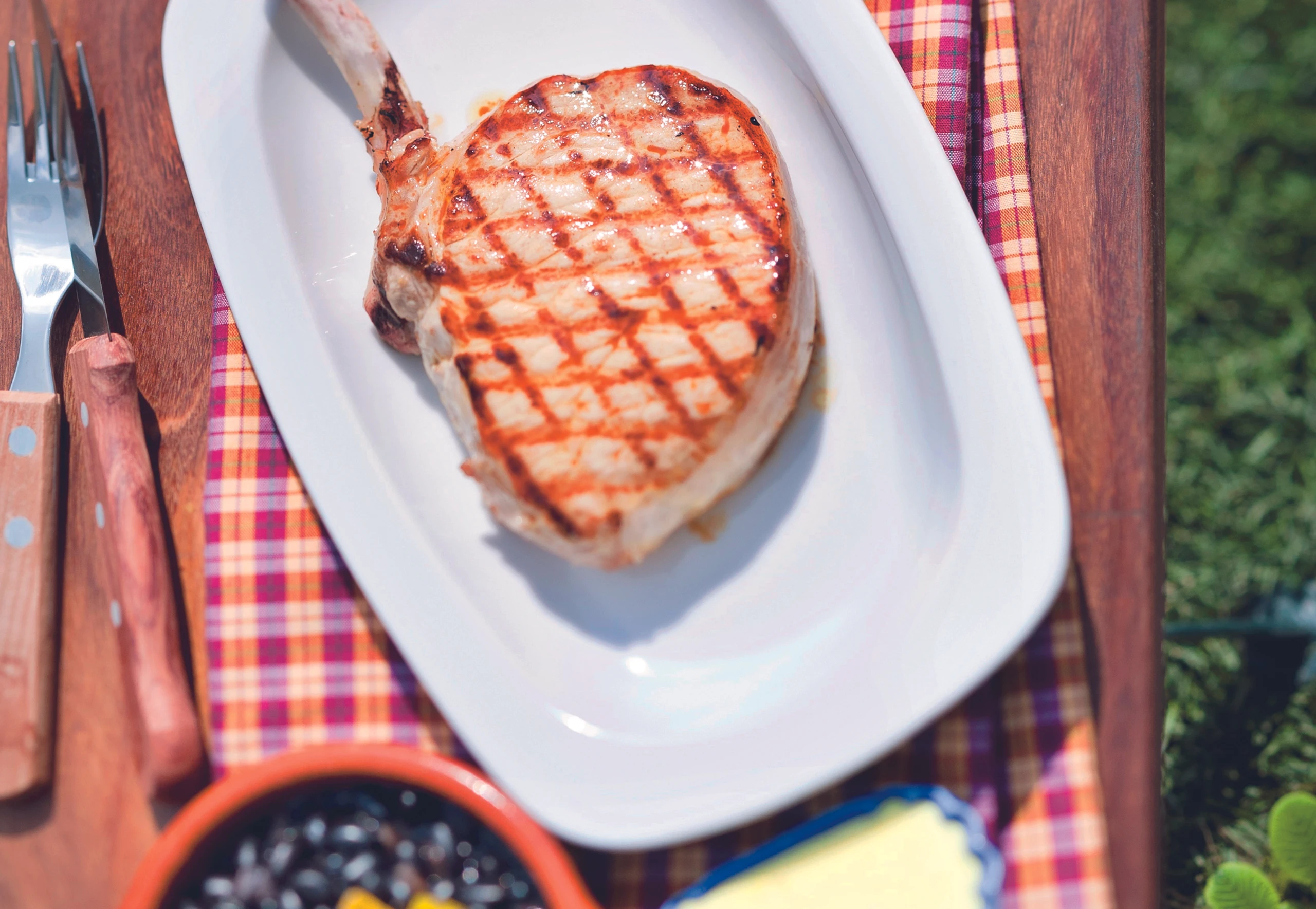 Gegrillte Schweinskoteletts mit Feijoada-Bohnen