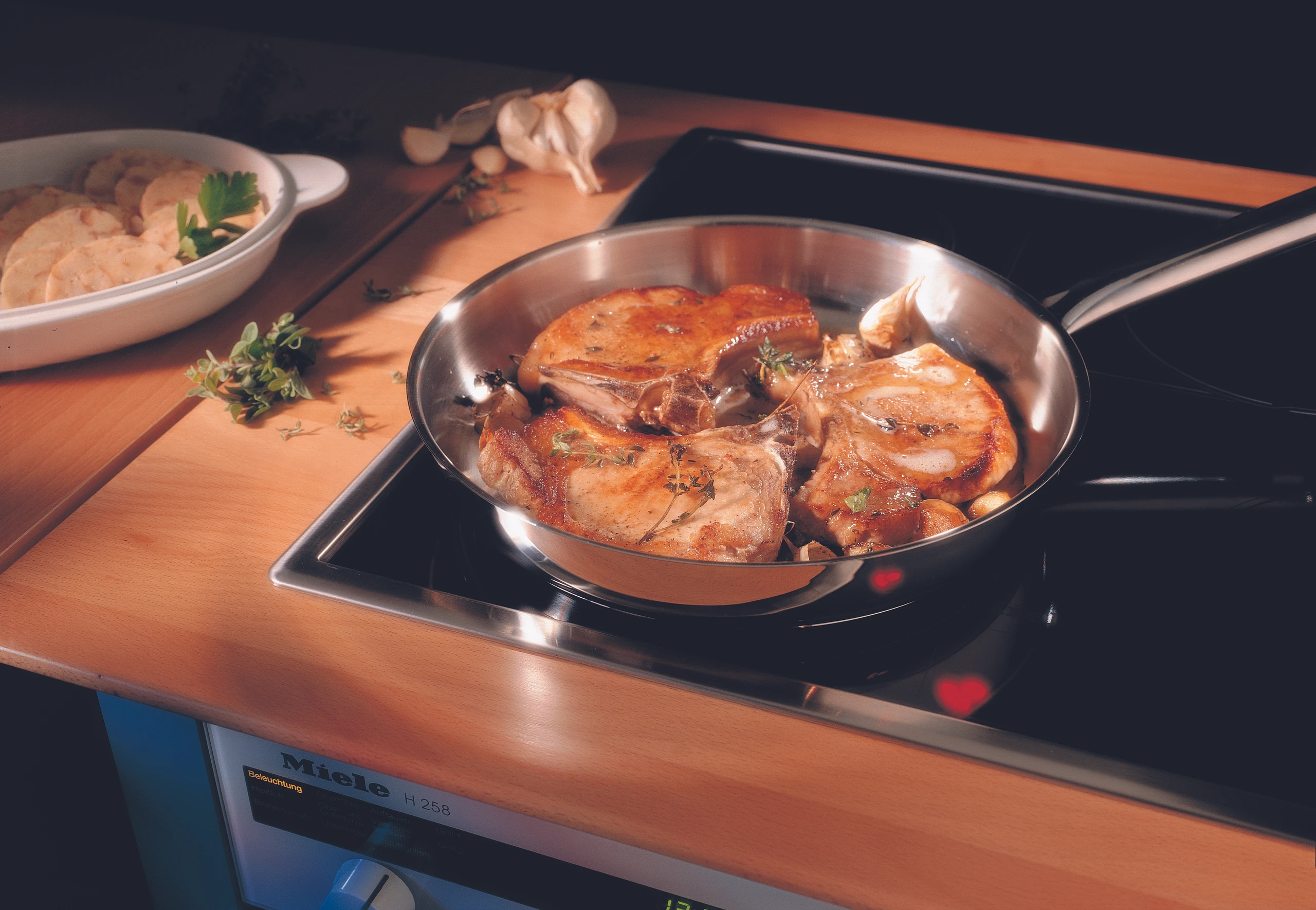 Koteletts aus der Pfanne heben, mit Alufolie zudecken und zum Rasten im Backrohr warmstellen.