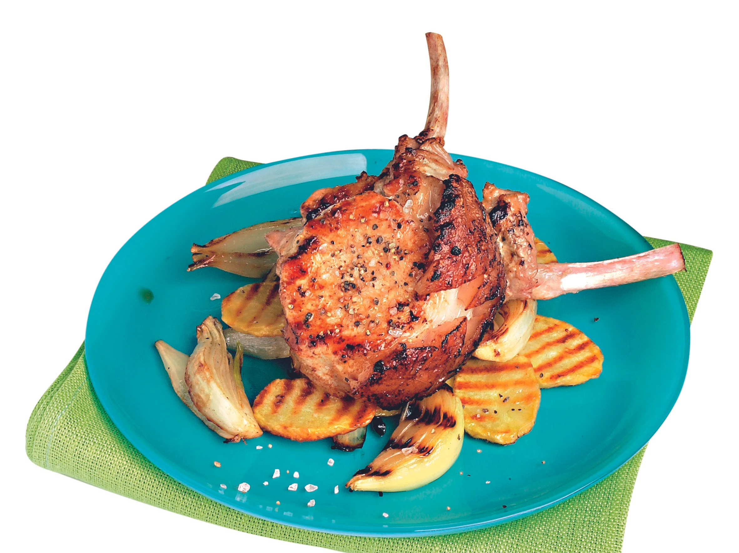 Koteletts bei mittlerer Hitze beidseitig je ca. 3 Minuten grillen. Mit dem Gemüse servieren.