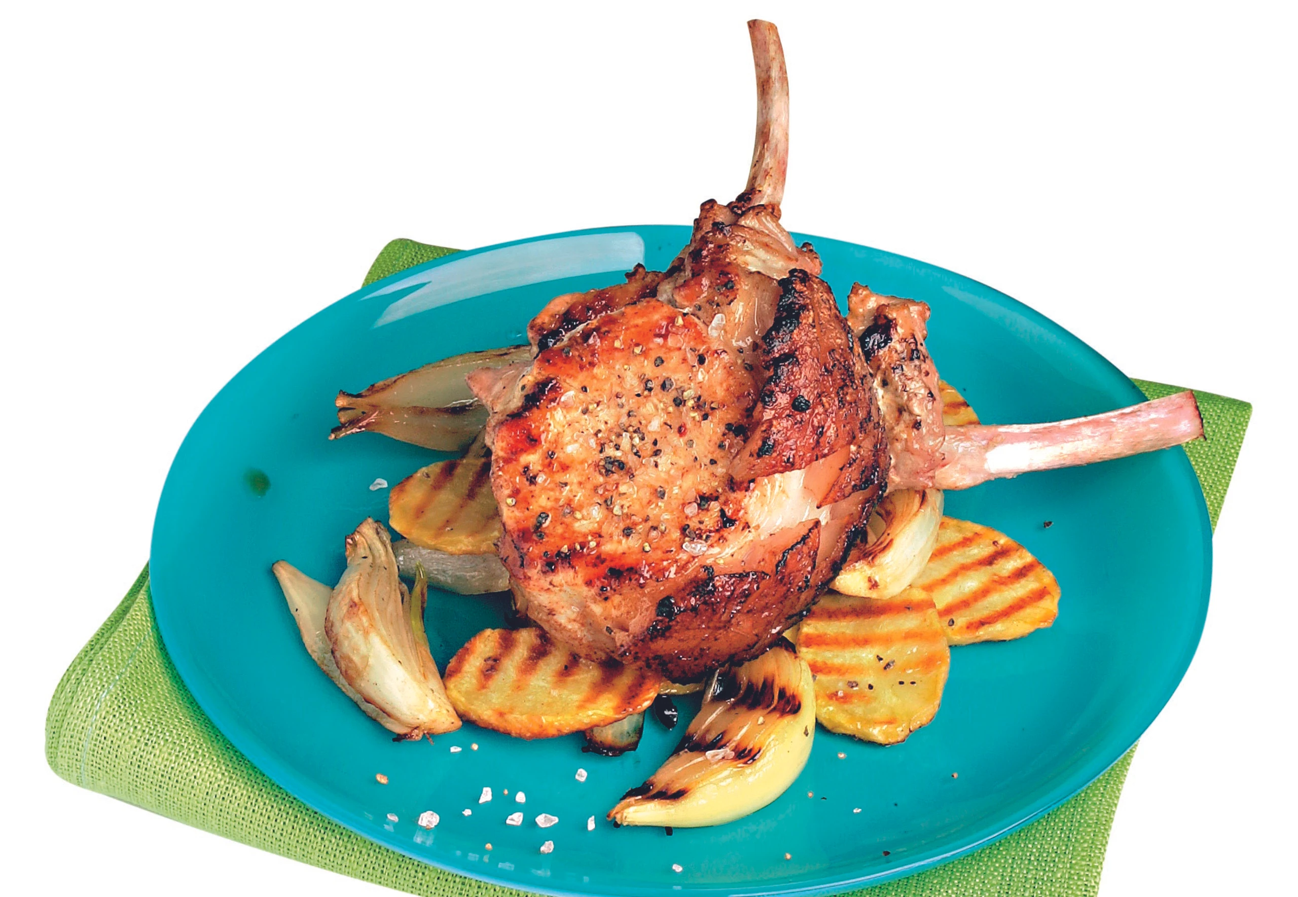 Gegrillte Schweinskoteletts mit Erdäpfeln
