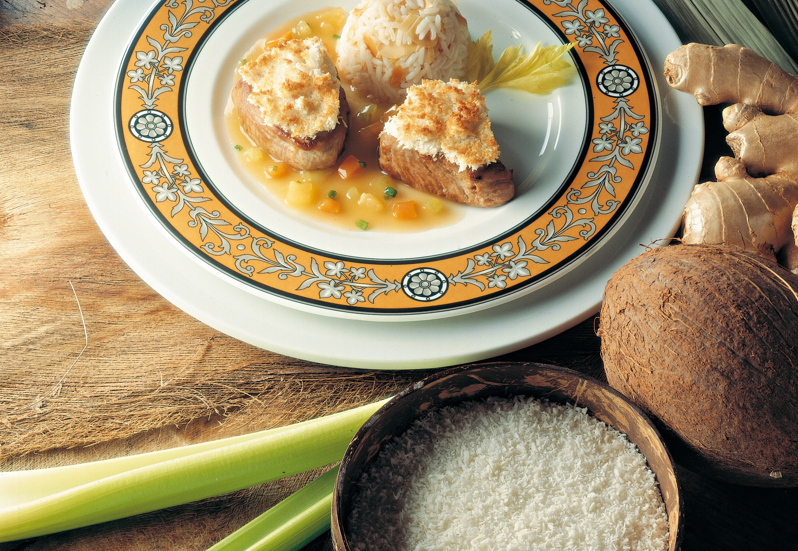 Schweinsmedaillons mit Kokos-Kruste