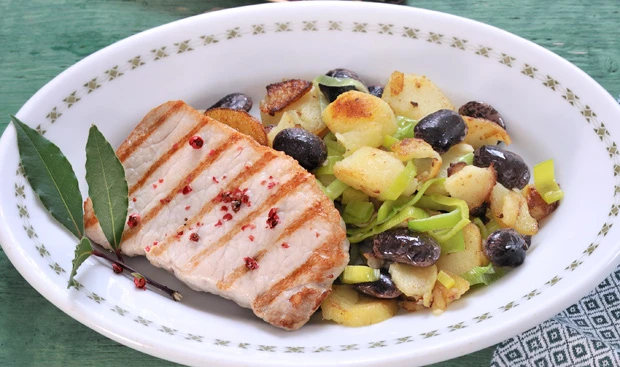Schweinssteak mit Erdäpfel-Käferbohnen-Gröstl