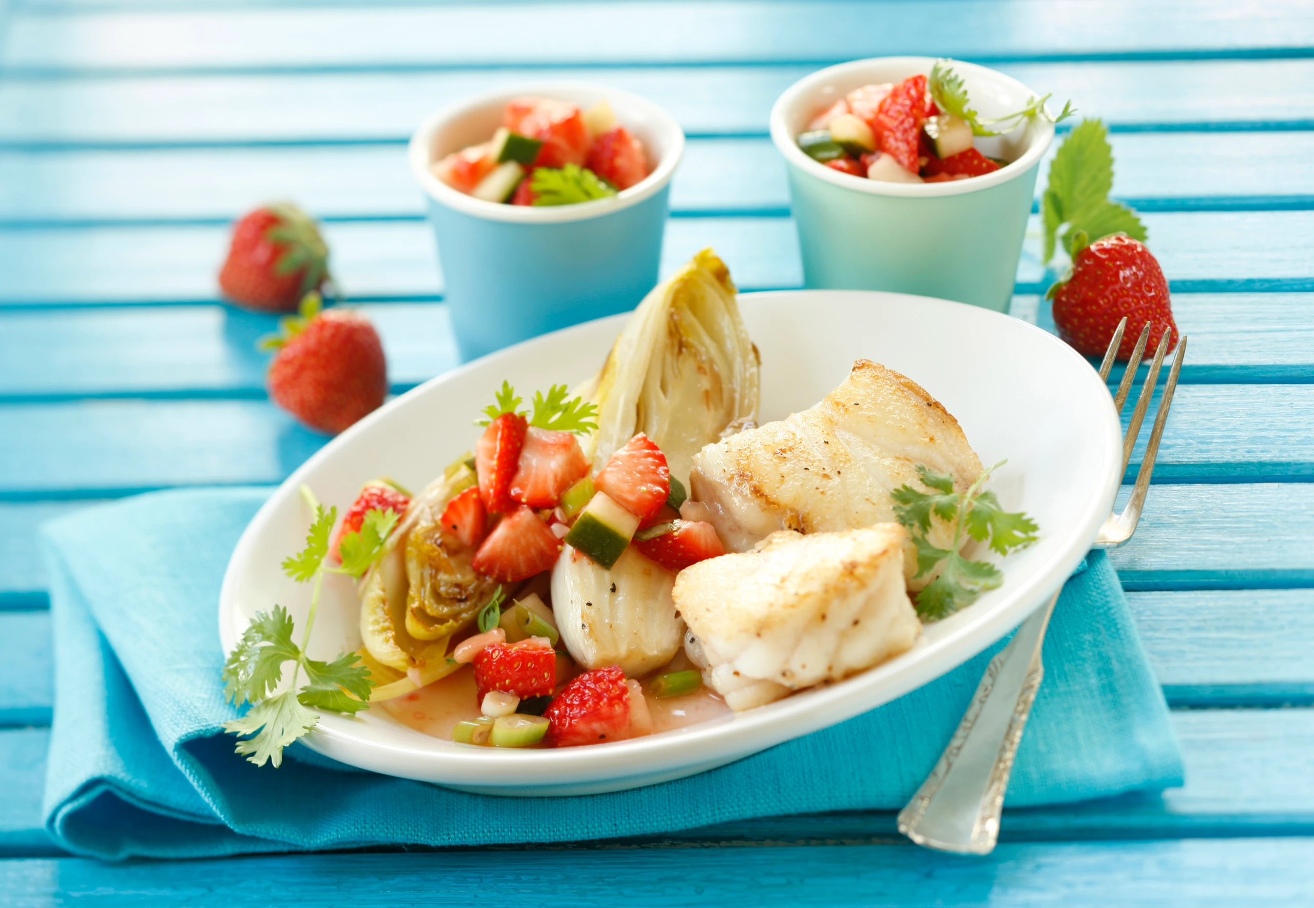 Seeteufel mit Chicorée und Erdbeer-Salsa