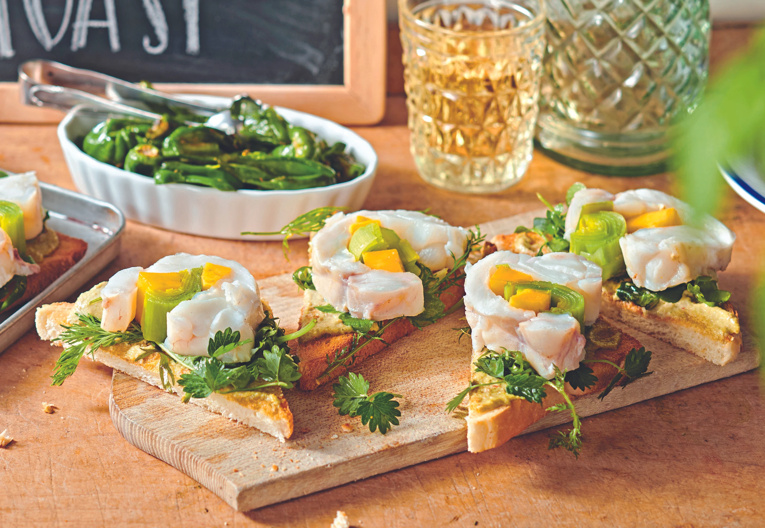 Filet in Scheiben schneiden. Toastecken mit Petersilie bestreuen, mit den Fischscheiben belegen und mit dem Bratensaft beträufeln. Toasts mit den Pimentos servieren.