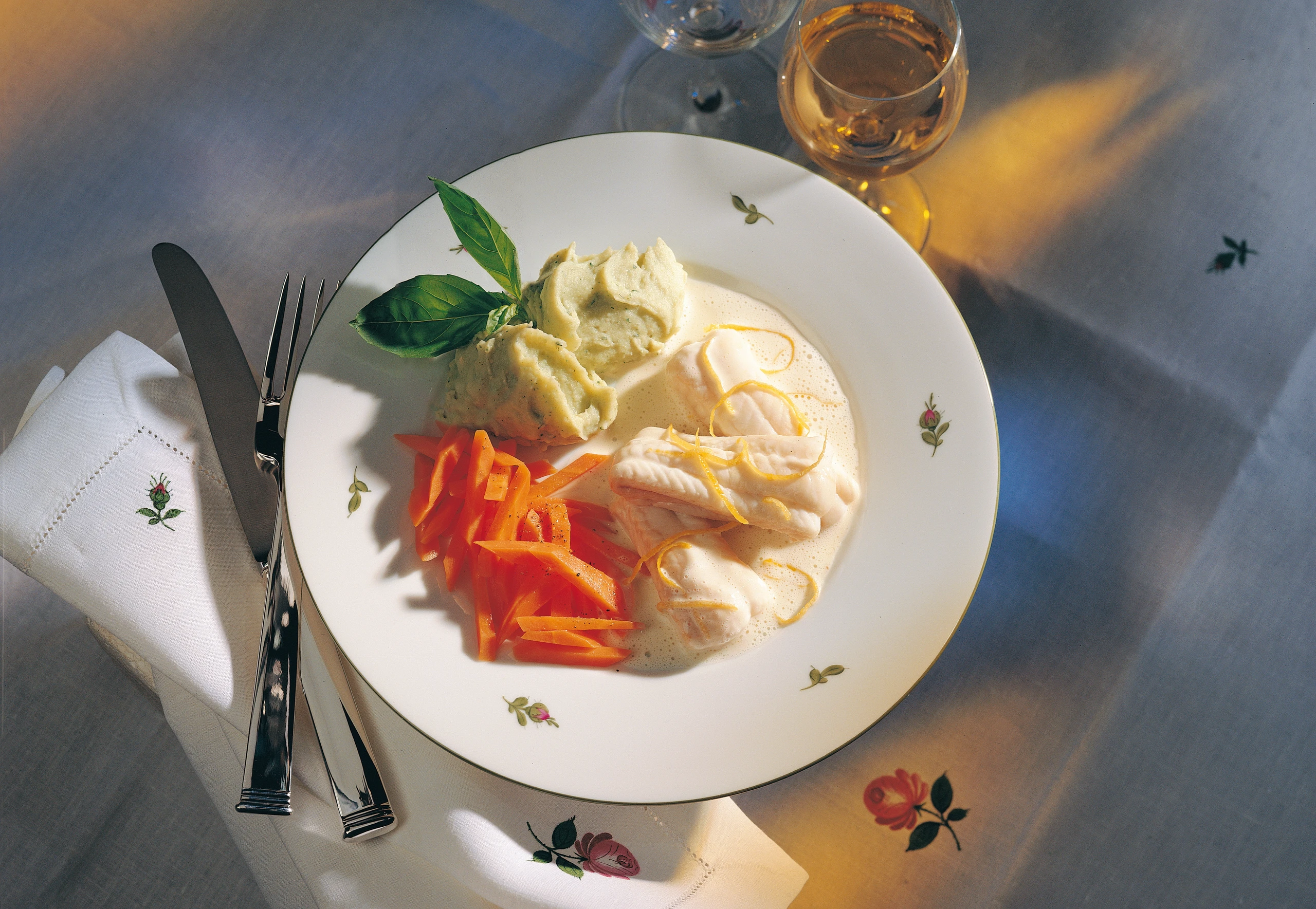 Seezunge mit Zitronensauce und Basilikum-Erdäpfelpüree