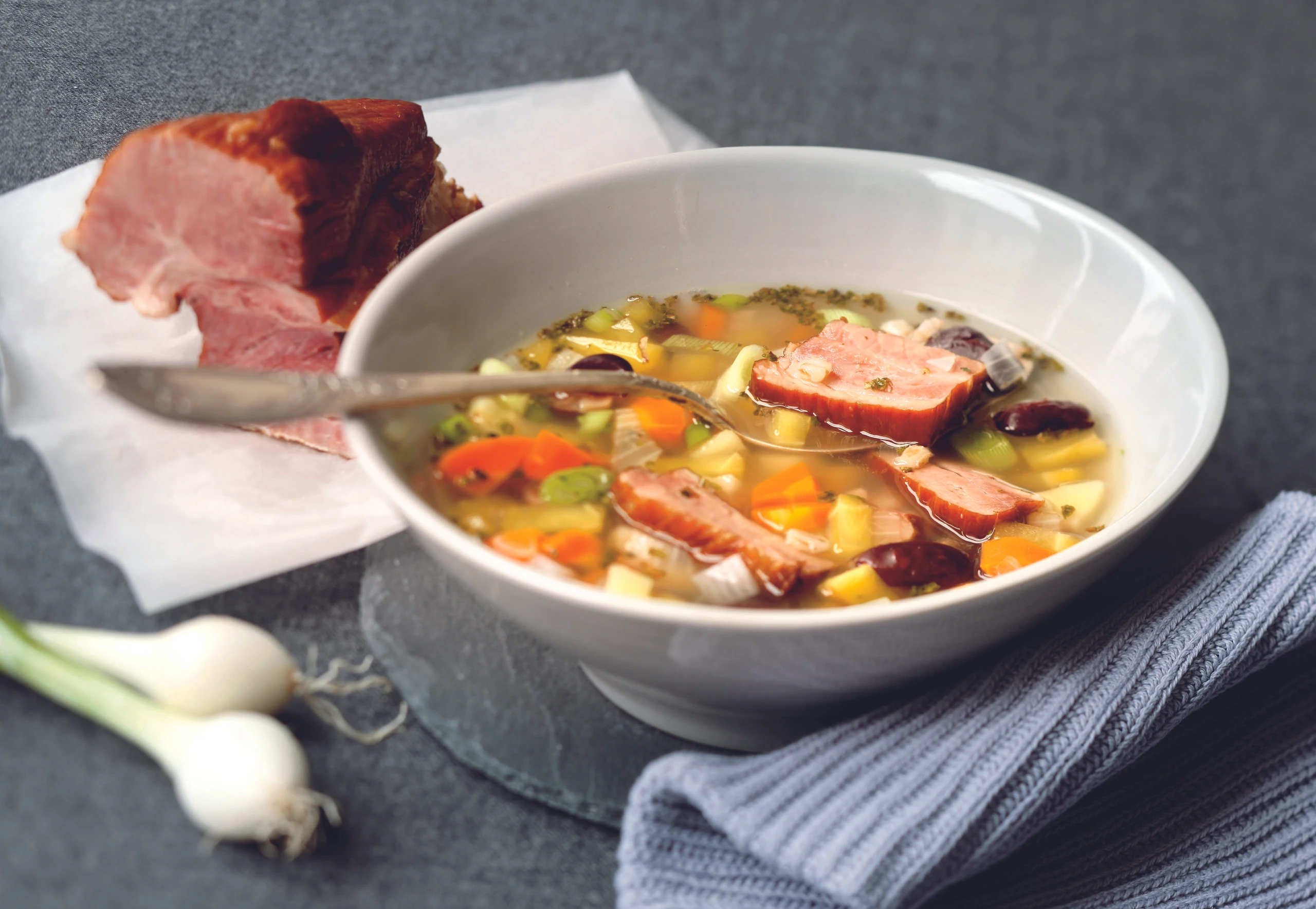 Selchfleischsuppe mit Bohnen
