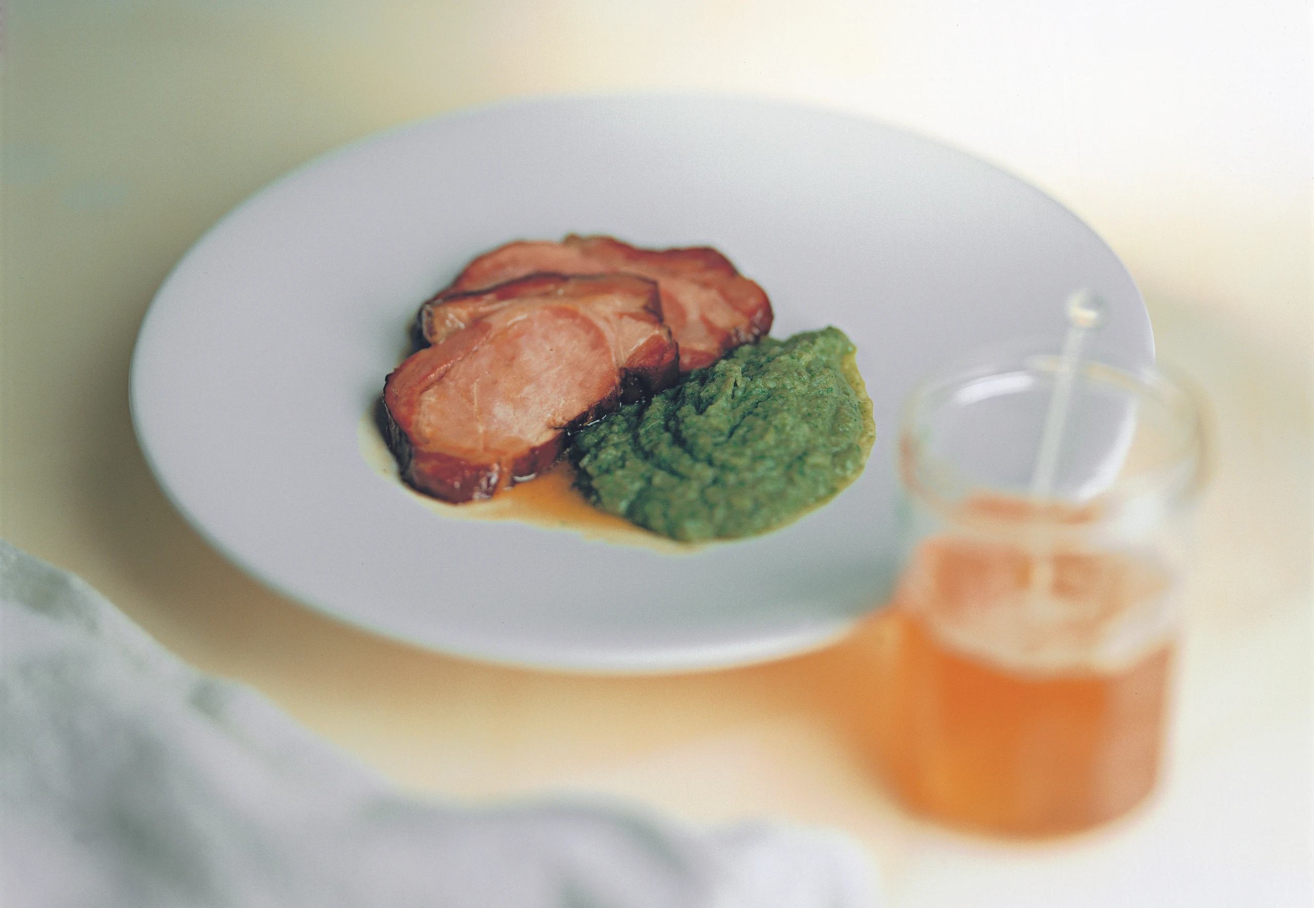 Fleisch aus der Pfanne heben. Bier-Honigsaft in einen kleinen Topf gießen und aufkochen (eventuell wenig Wasser zugießen). Fleisch in Scheiben schneiden und mit Püree und dem Honig-Biersaft anrichten.