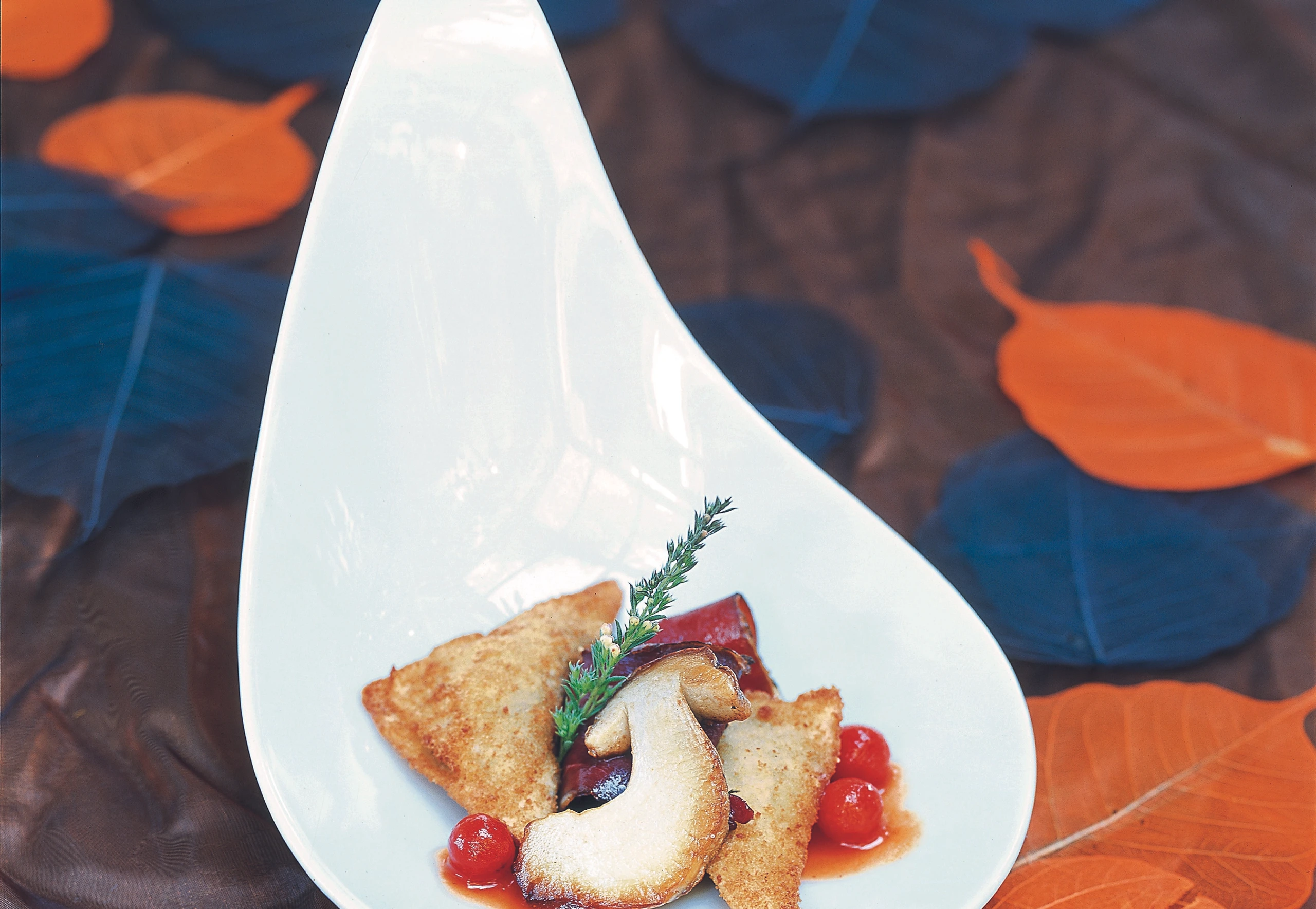 Sellerie-Pilz-Tascherl mit Vogelbeersauce