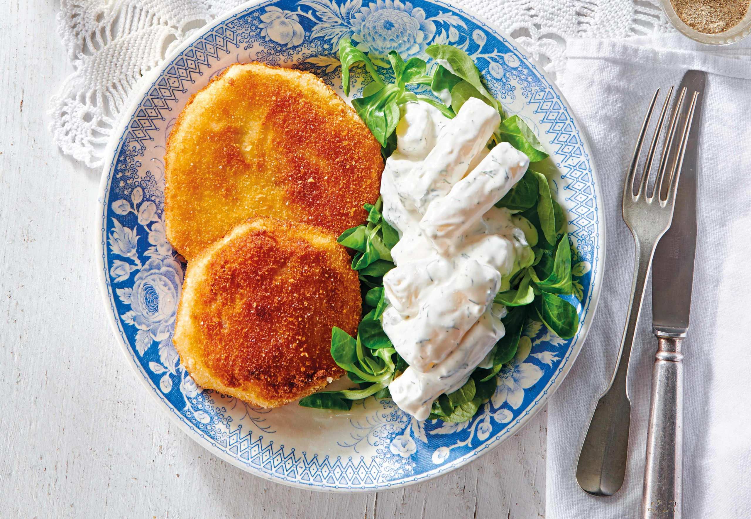 Sellerie-Schnitzel mit Schwarzwurzelsalat