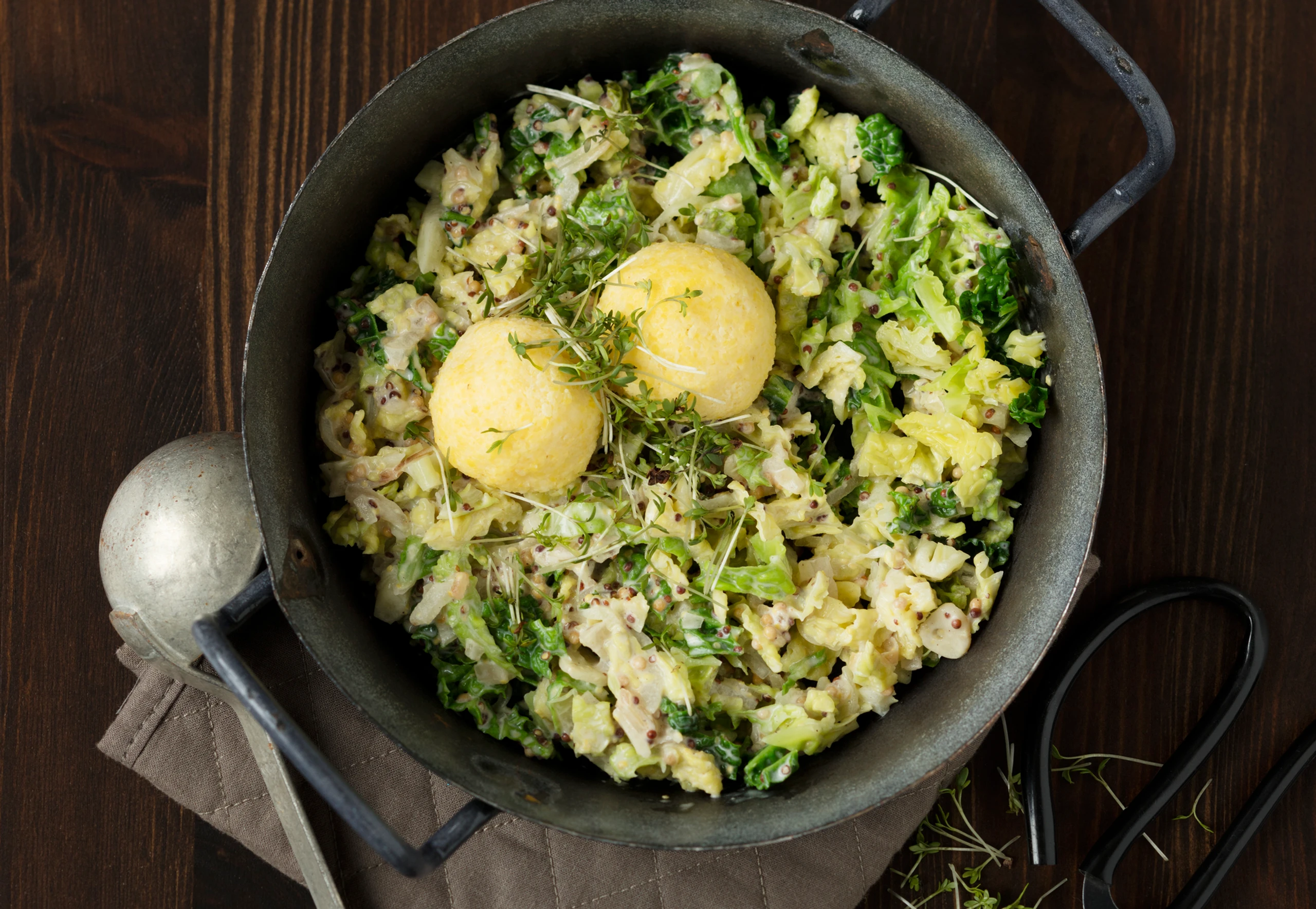 Senfkohl mit Polentaknödeln